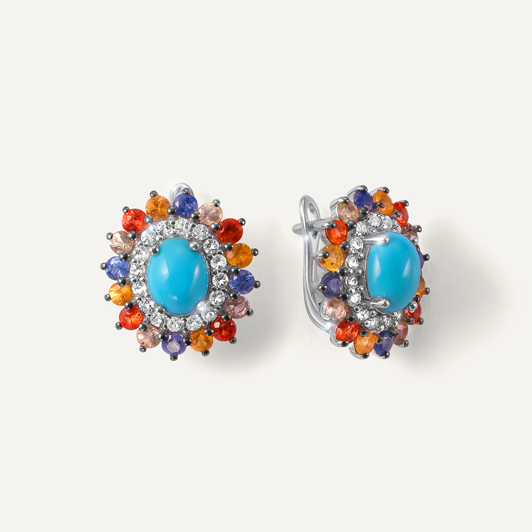 Серебряные серьги с бирюзой и мультисапфирами