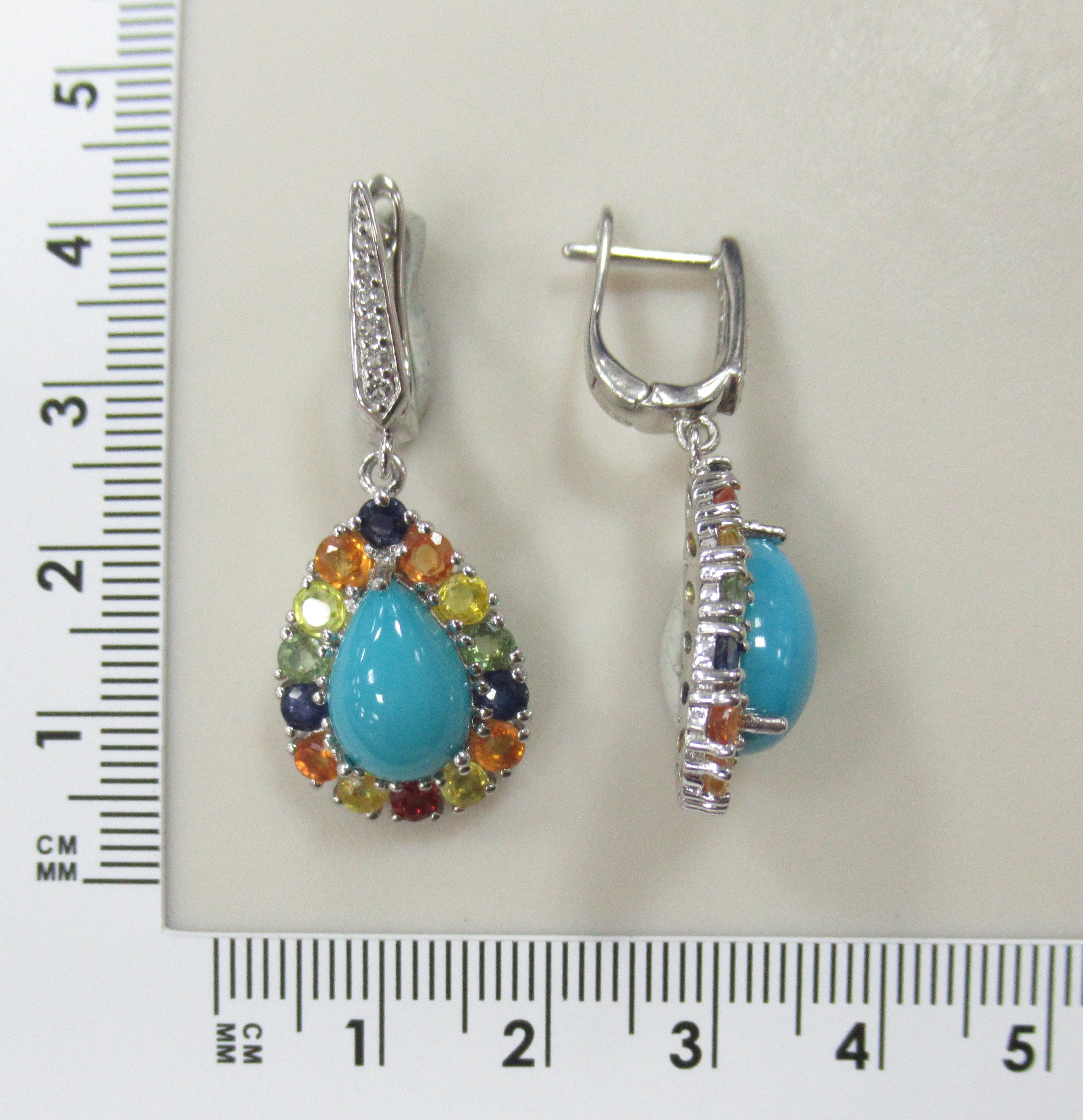 Серебряные серьги с изумрудами, сапфирами и рубина...