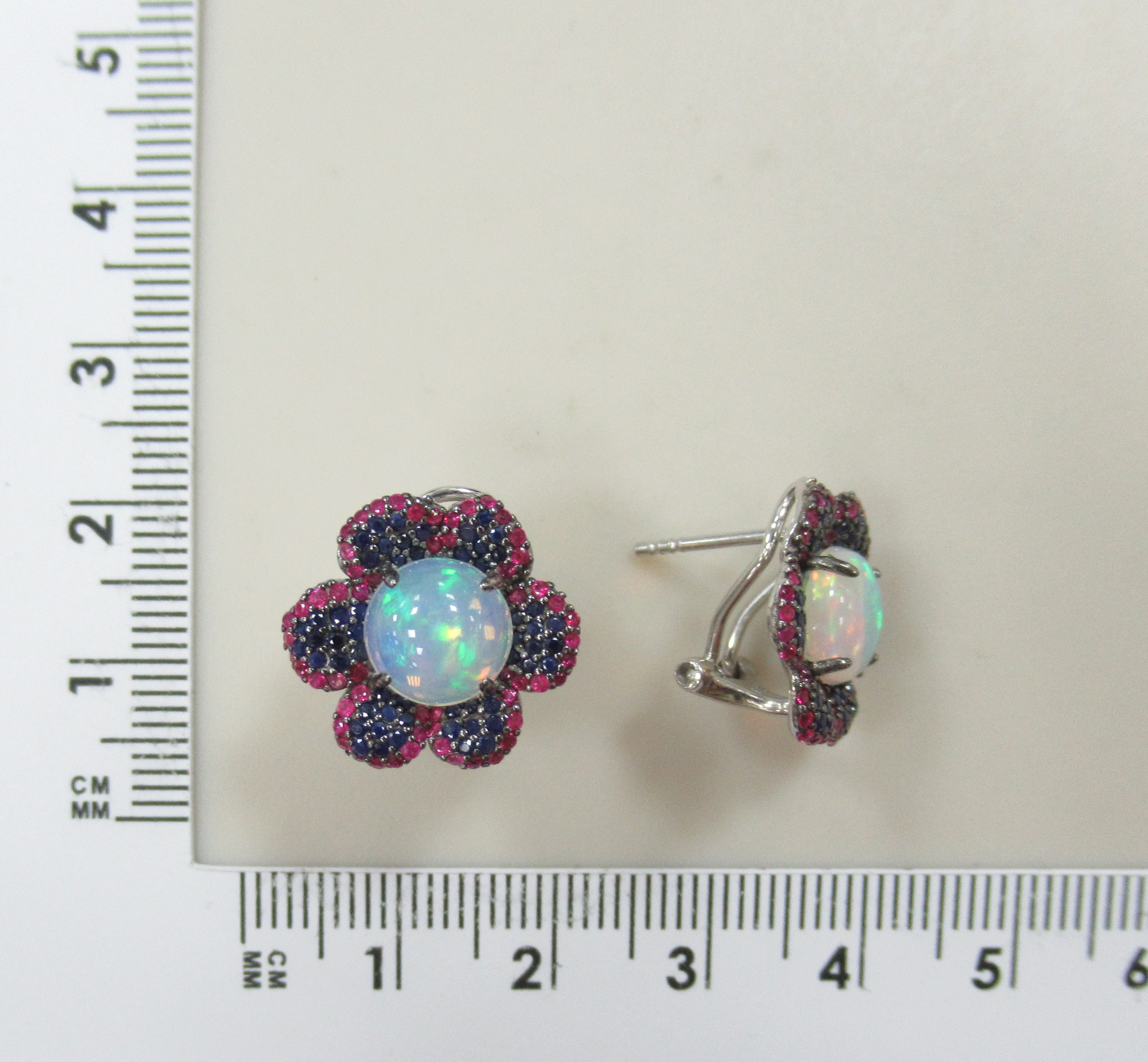 Серебряные серьги с опалами и мультисапфирами "Цветы"
