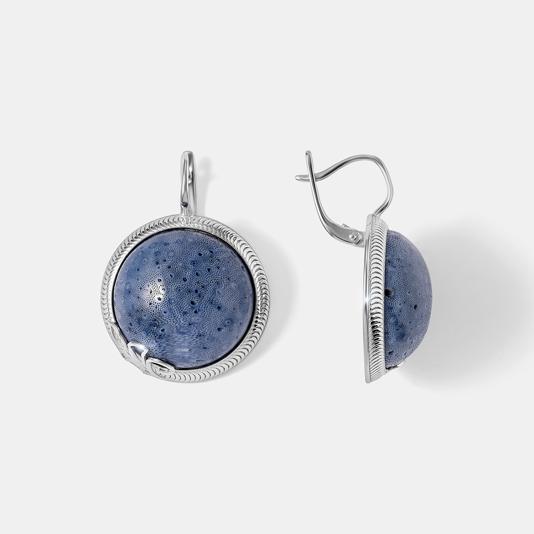 Серебряные серьги-пусеты с голубыми бриллиантами