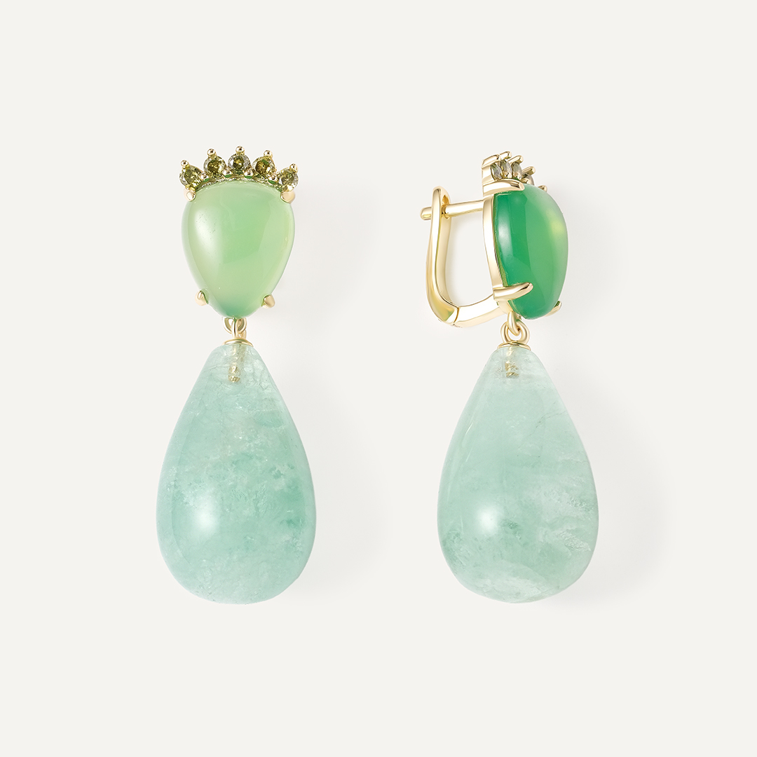 Серьги из желтого золота с зелеными бриллиантами
