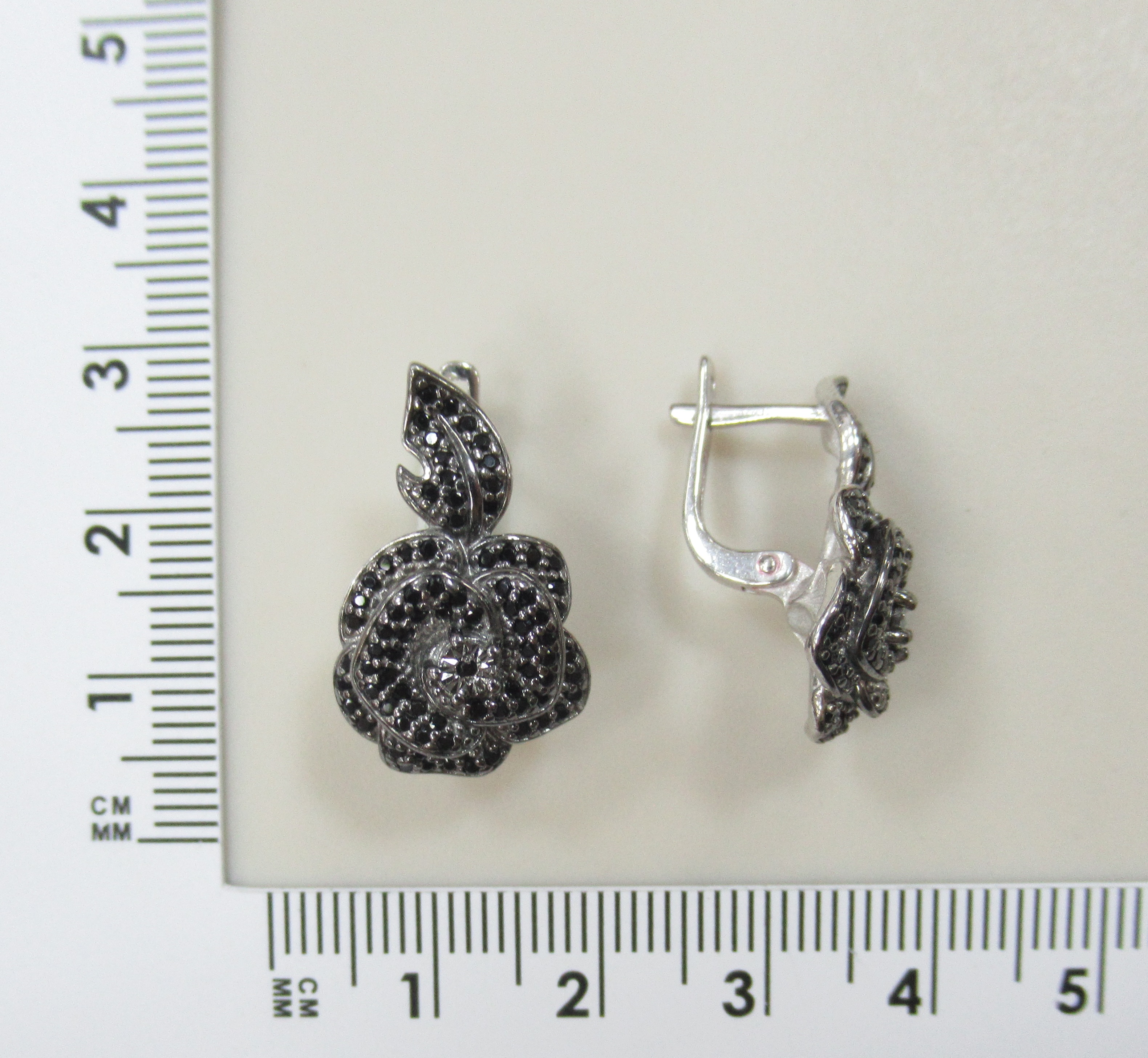 Серебряные серьги с бриллиантами и шпинелью