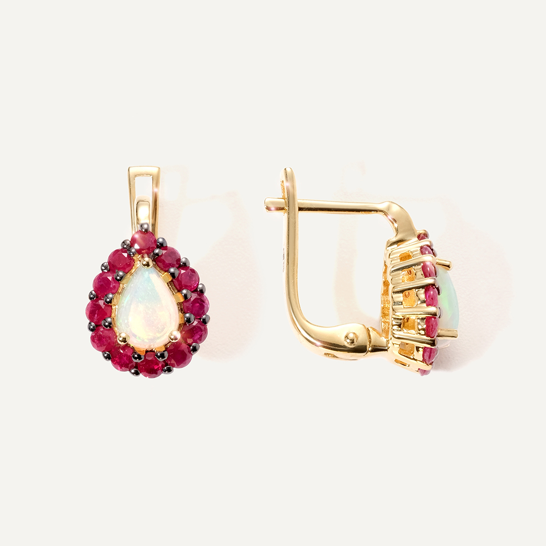 Серьги-пусеты из желтого золота с рубинами "Цветы"