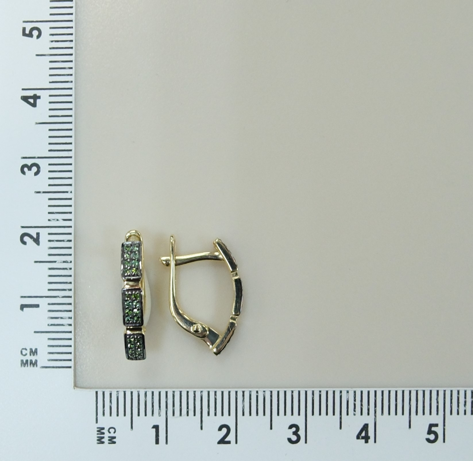 Серьги из желтого золота с зелеными бриллиантами