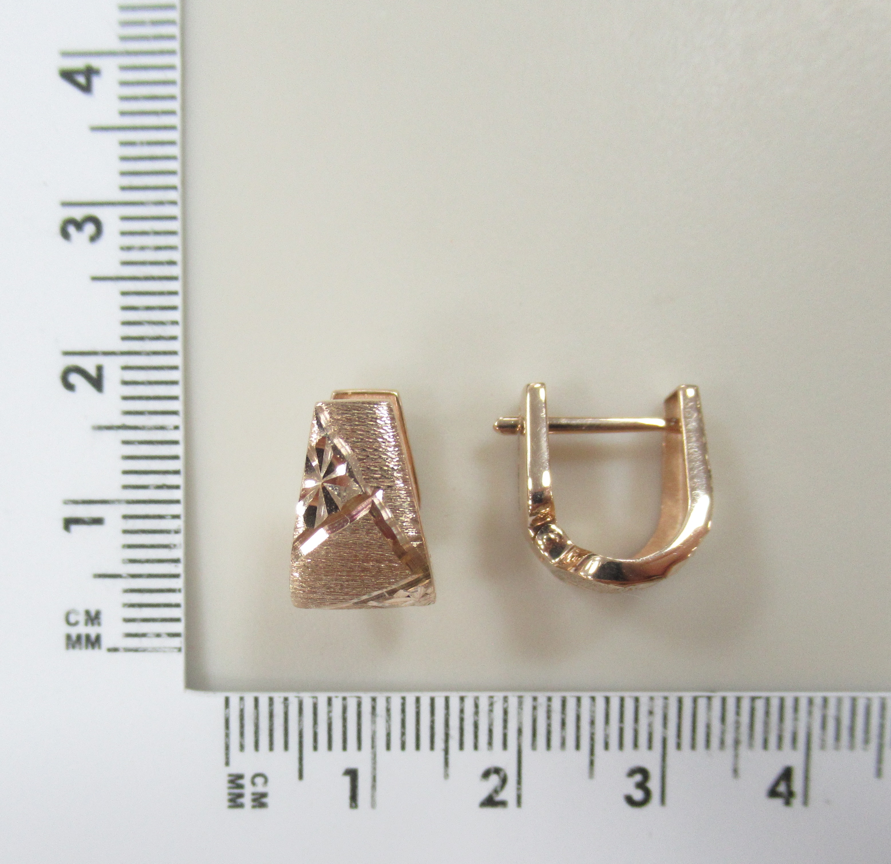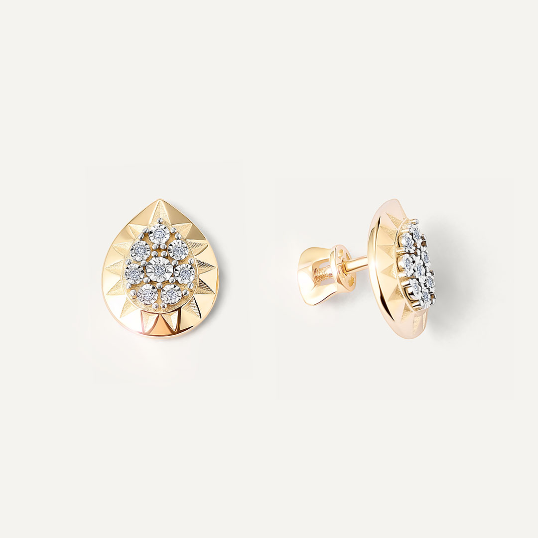 Золотые серьги-пусеты 585 пробы; желтое золото; родий; вставки 2 Бр.Кр-57 3/6А 0,069; 8 Бр.Кр-57 3/6
