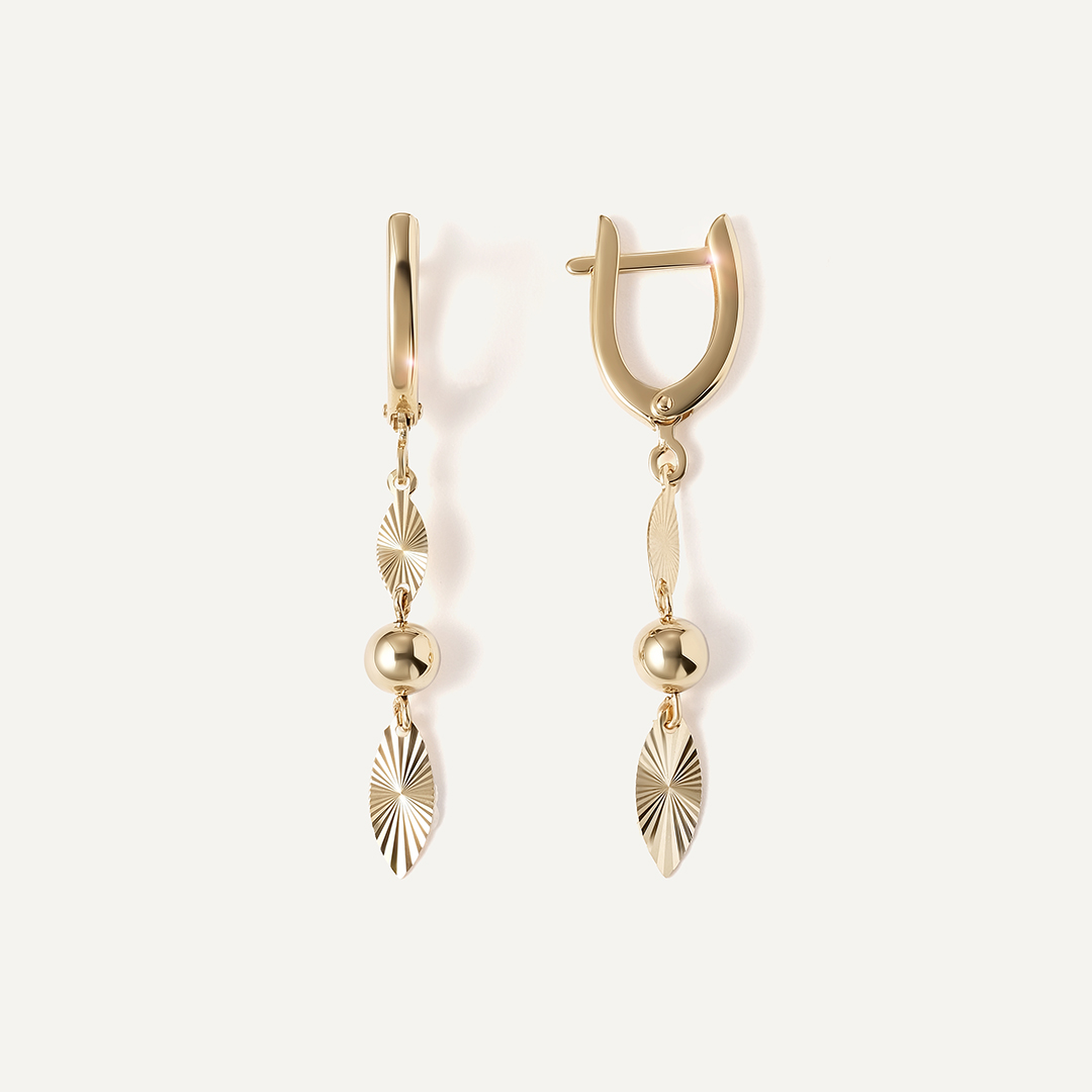 Серьги-протяжки из желтого золота с агатами "Клевер"