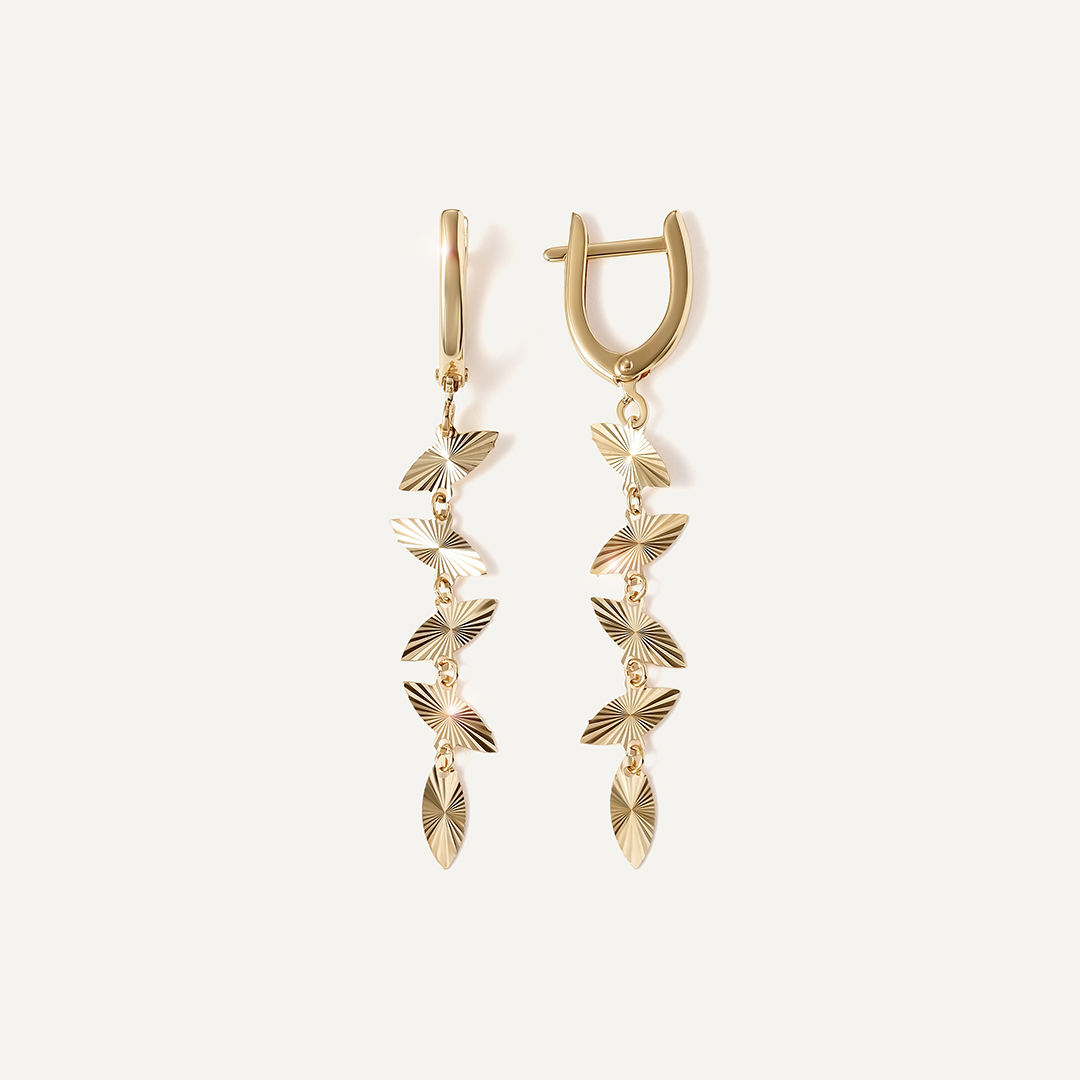 Серьги-протяжки из желтого золота с перламутром "Клевер"