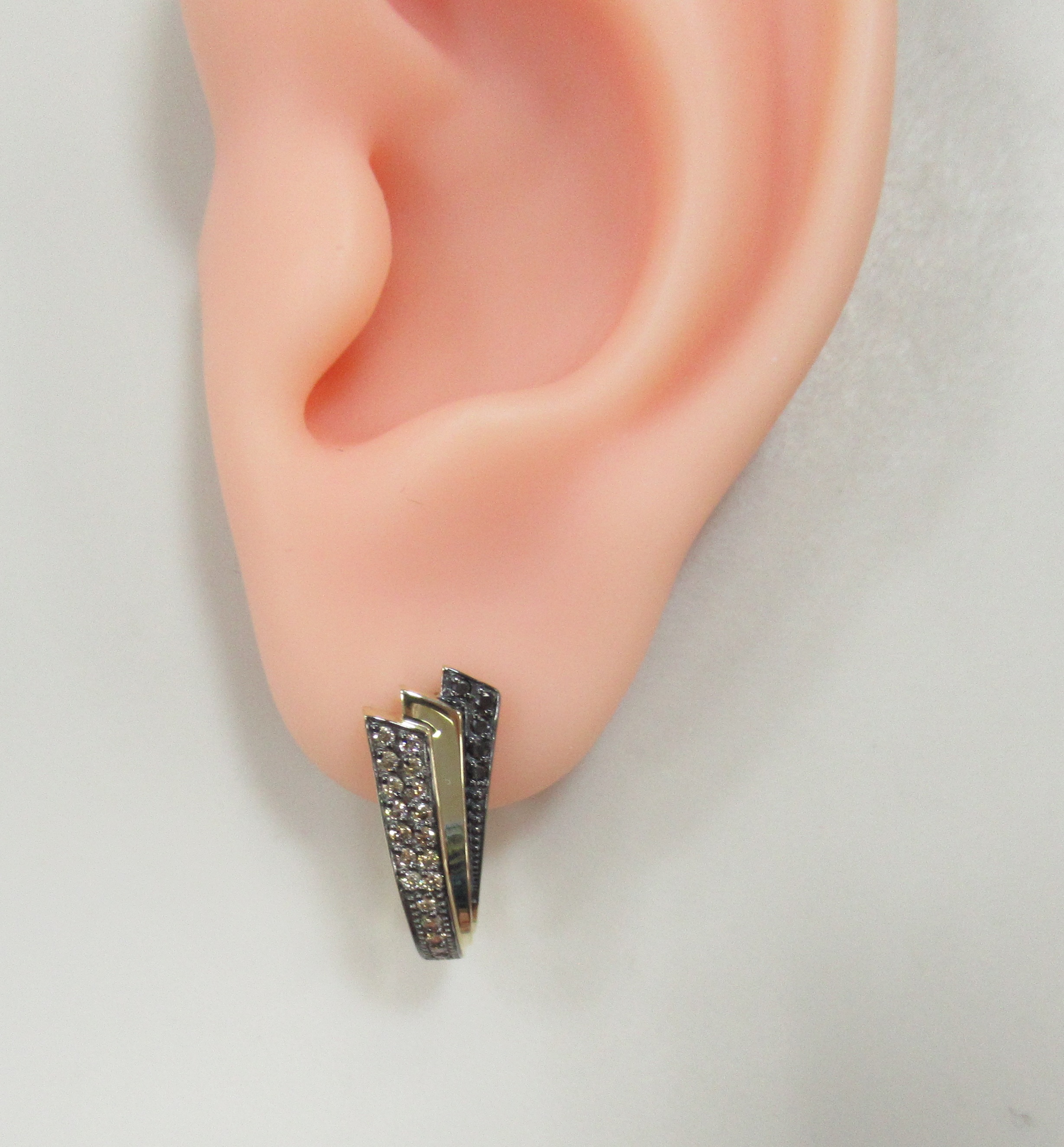 Серьги из желтого золота с коньячными и черными бриллиантами