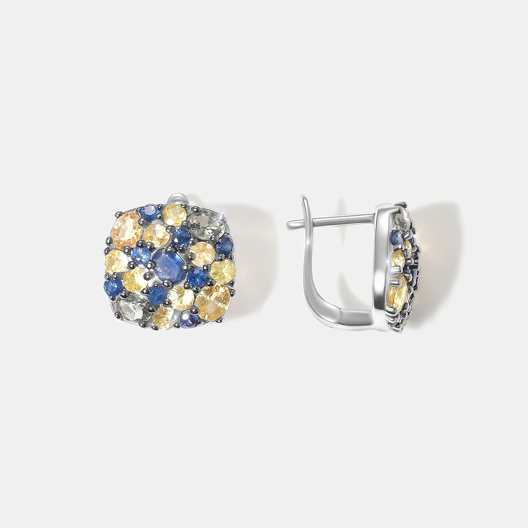 Бижутерные серьги с ювелирным стеклом "Цветы"