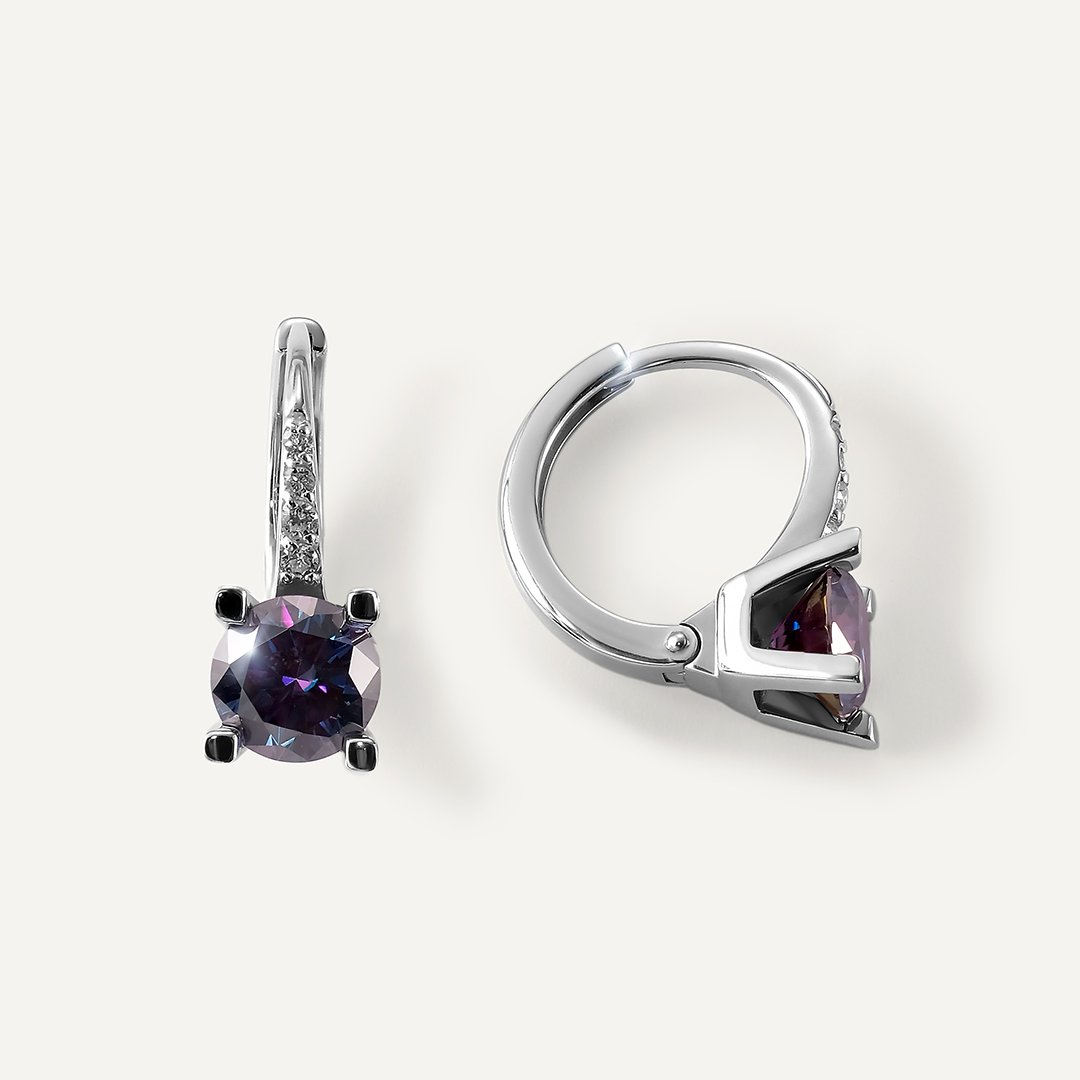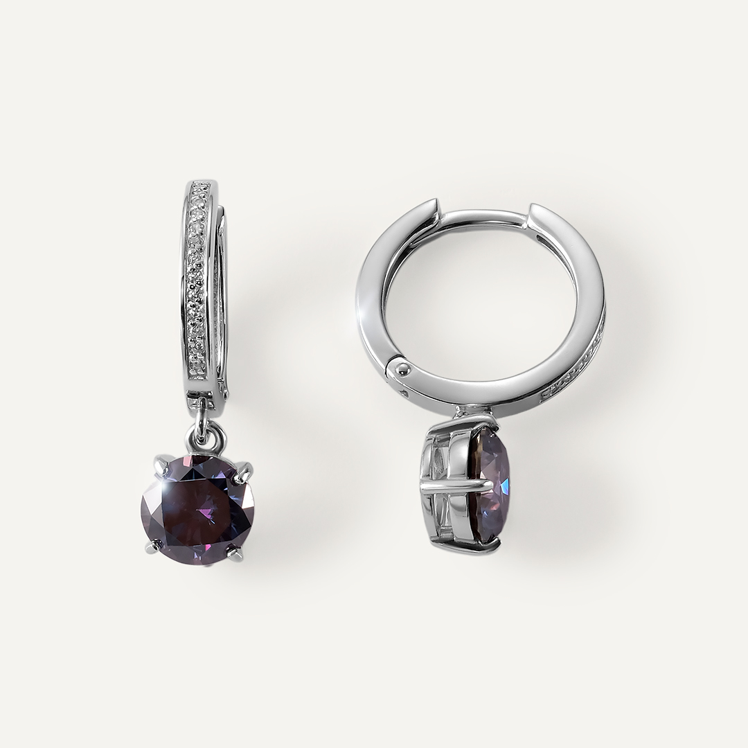 Серебряные серьги с фиолетовыми муассанитами