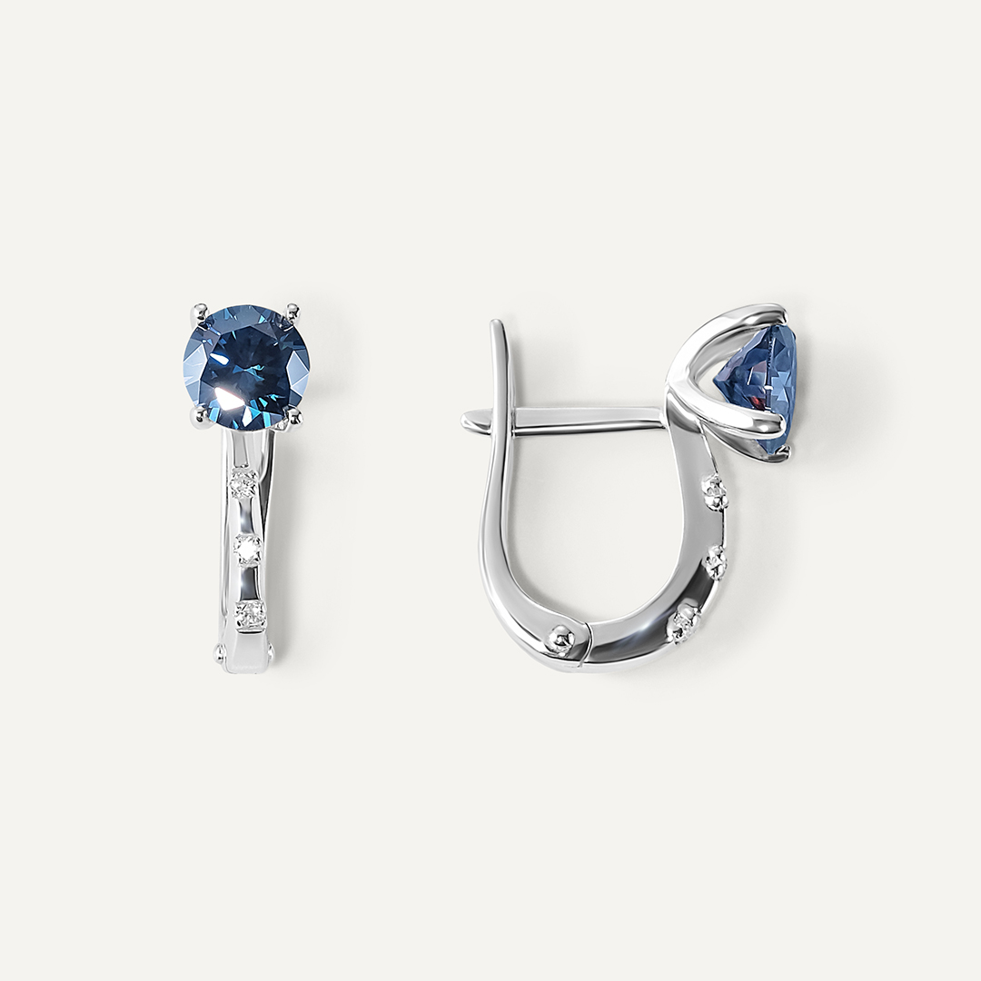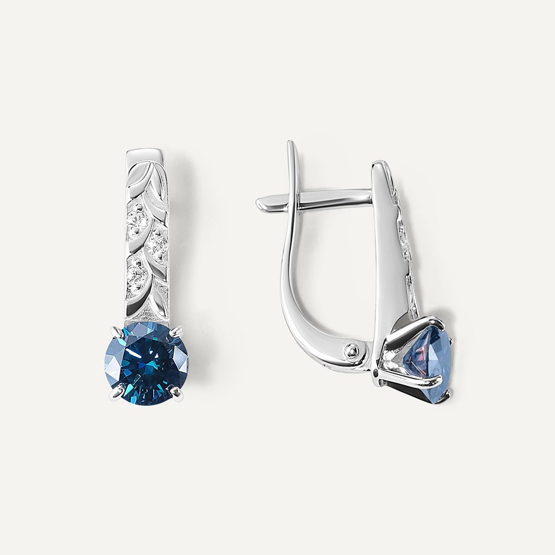 Серебряные серьги с синими муассанитами