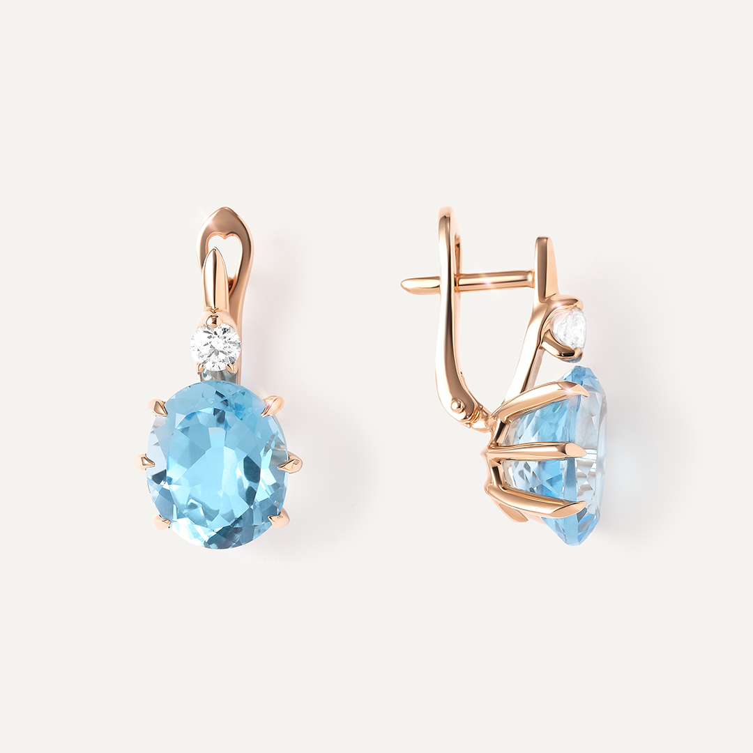 Серьги-пусеты из комбинированного золота с бриллиа...