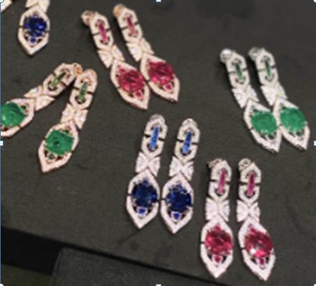 Серебряные серьги с изумрудами, сапфирами и рубина...