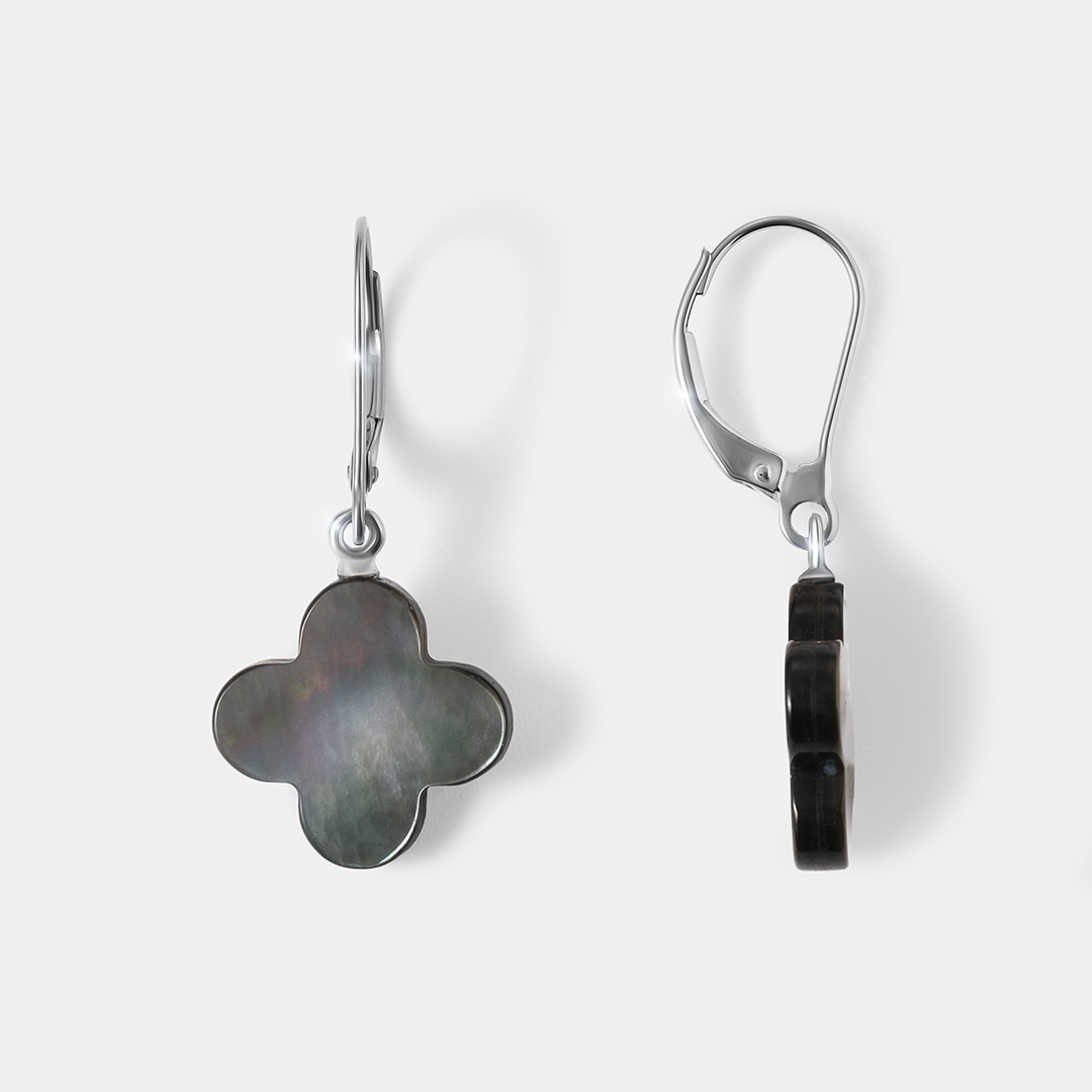 Серьги из белого золота с перламутром "Клевер"