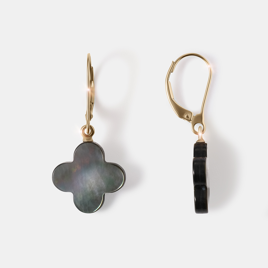 Серьги из желтого золота с перламутром "Клевер"
