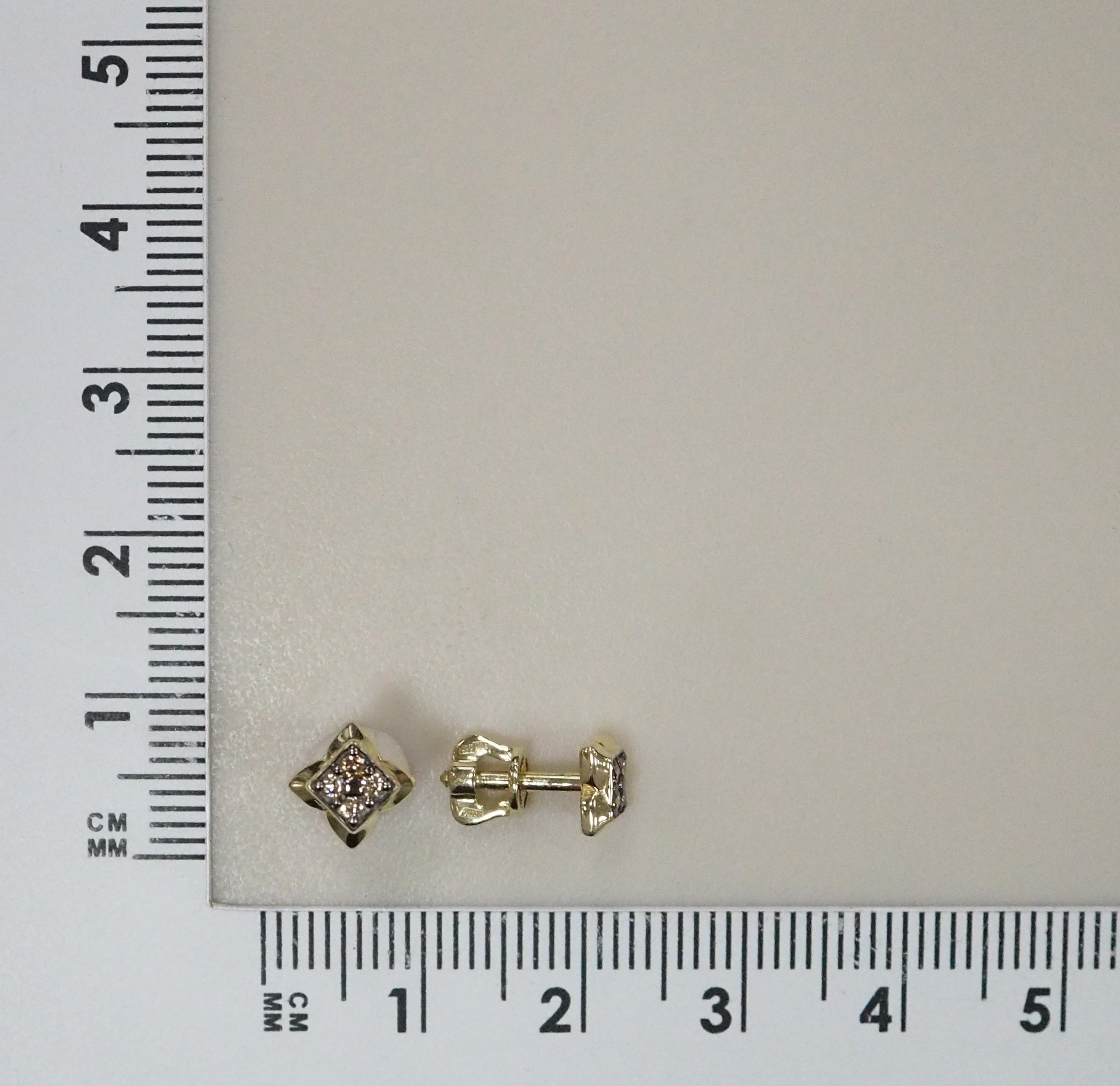 Серьги-пусеты из желтого золота с коньячными бриллиантами