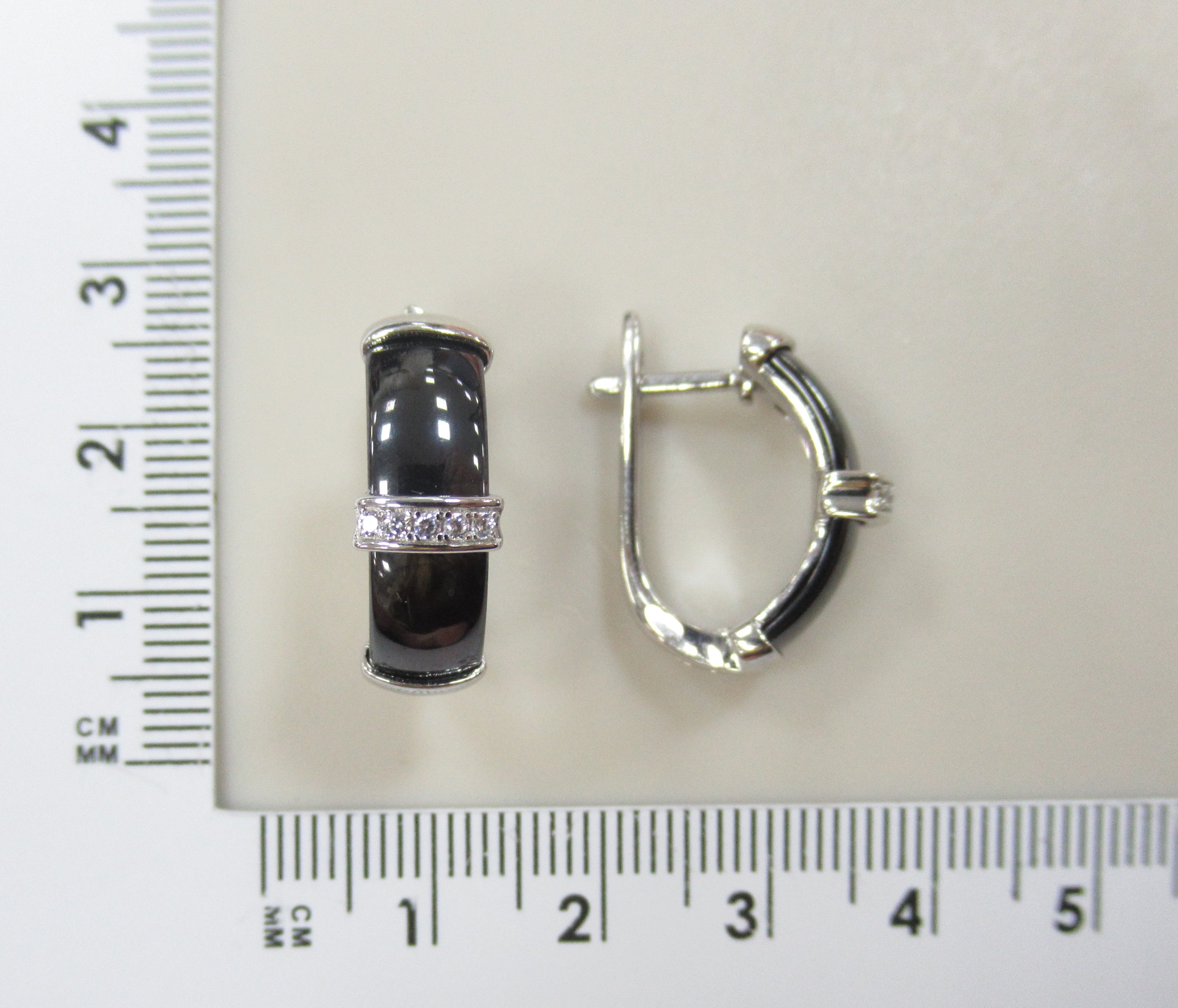 Серебряные серьги 925 пробы; вставки Глиттер черный;