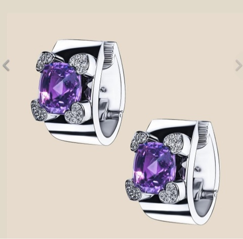 Серьги из бижутерного сплава золотого цвета; вставки Эмаль фиолет.; Россыпь Куб.Цирконий бесцв.;