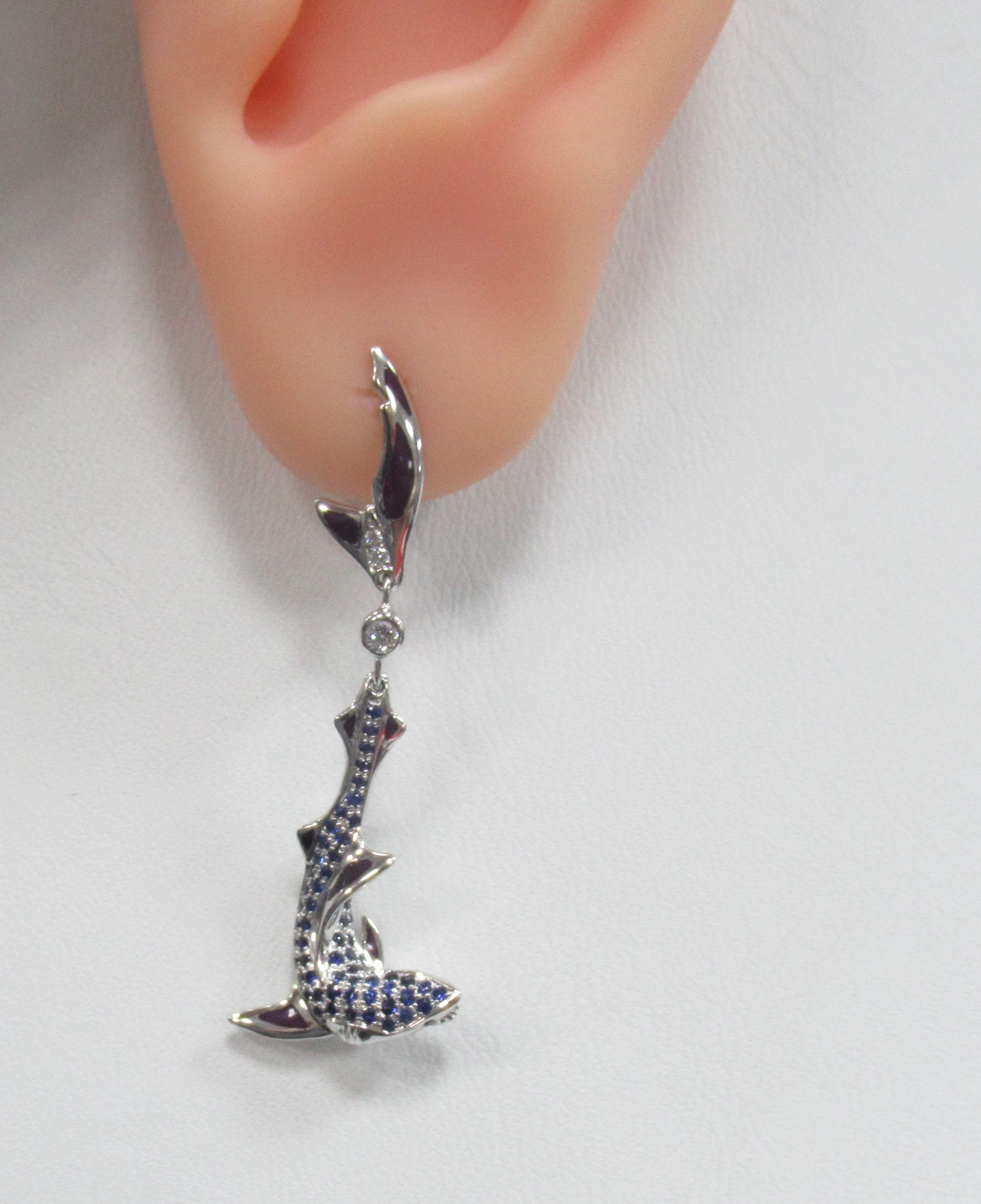 Серьги из белого золота с сапфирами "Акулы"
