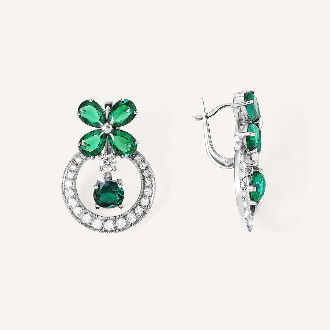 Серьги из белого золота с изумрудами