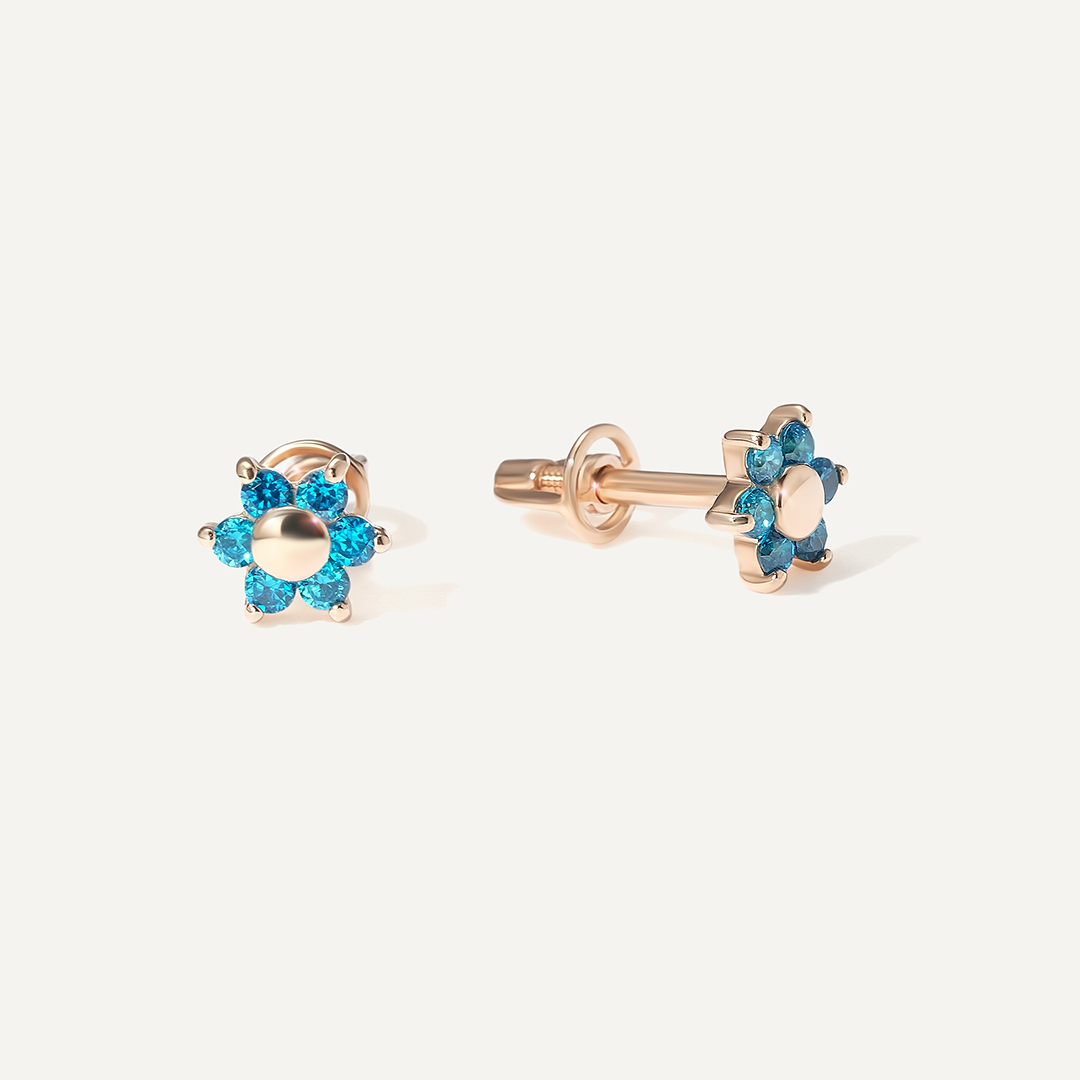 Серьги-пусеты из золота с фианитами "Цветы"