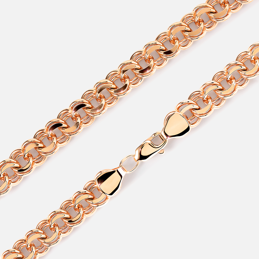 Цепь из белого золота плетение "Бисмарк" двойной граненый