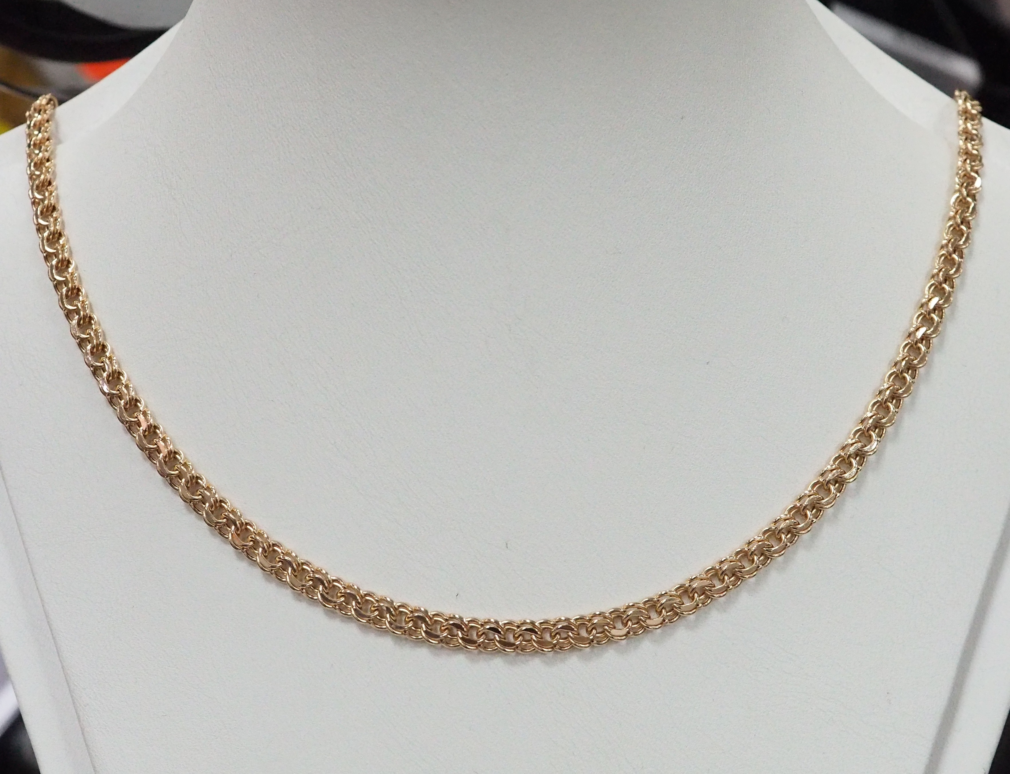 Цепь из комбинированного золота плетение "Веревка/Перлина"