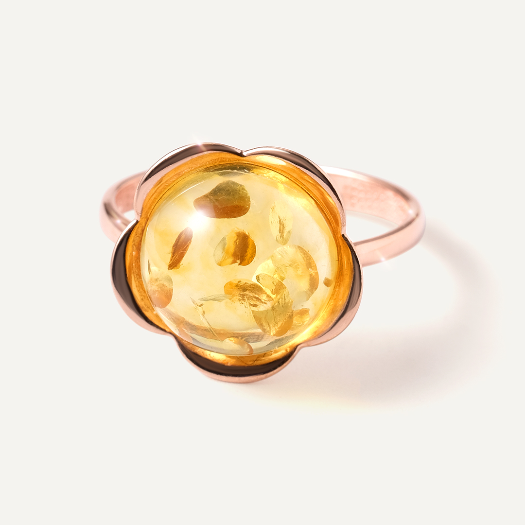 Серебряное кольцо с янтарем и жемчугом "Цветок"