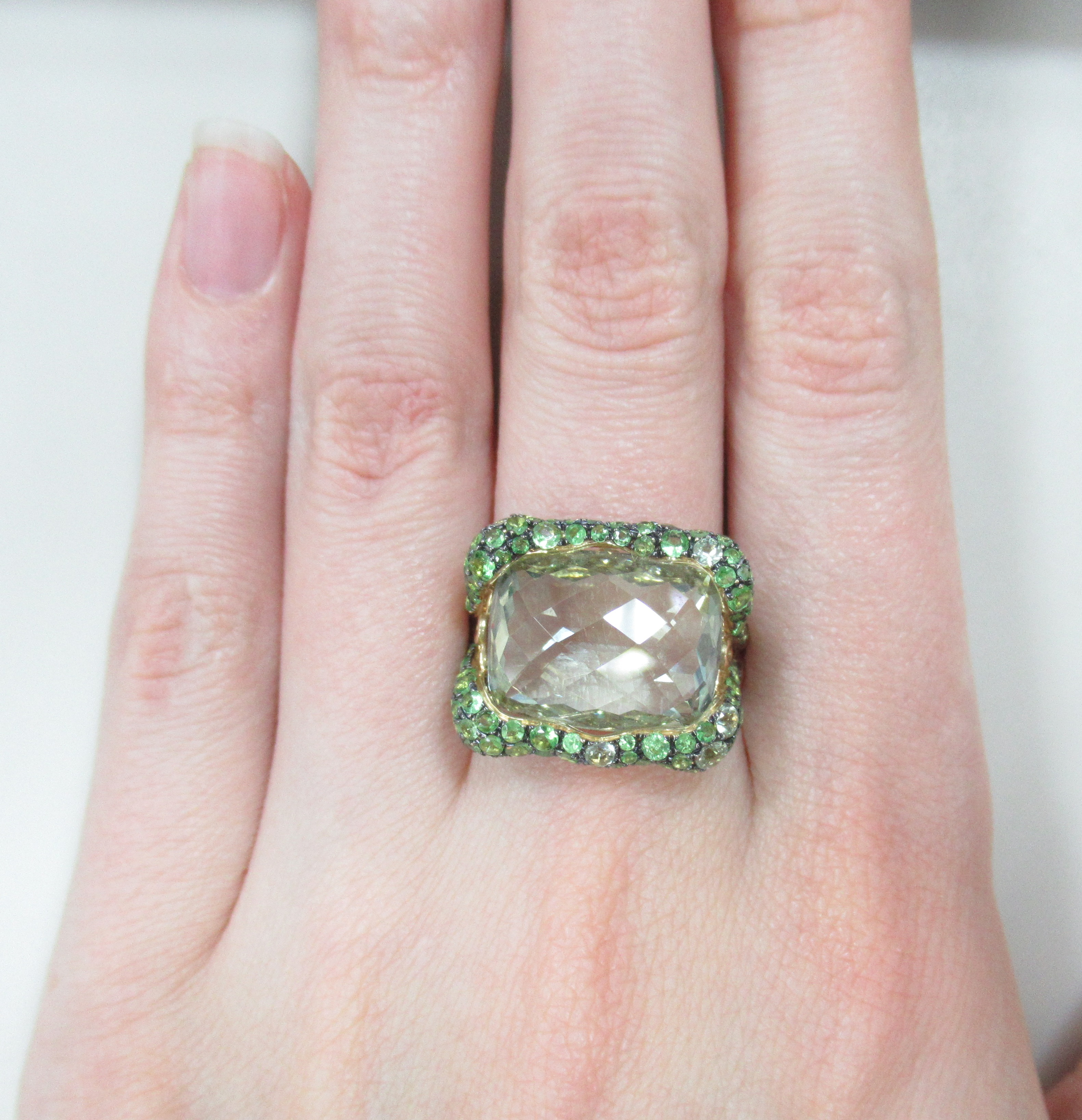 Золотое кольцо 585 пробы; родий; вставки 1 Бр.Кр-57 0,539 9/10А; 9 Бр.Кр-17 0,068 2/3А;