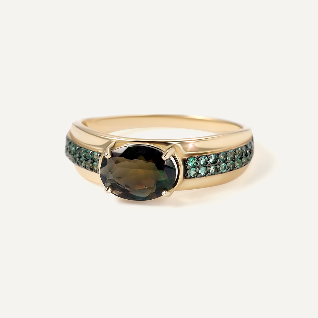 Кольцо из золота с зелеными бриллиантами