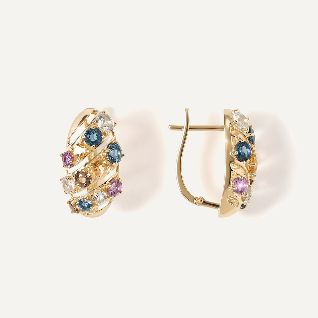 Серьги из желтого золота с самоцветами