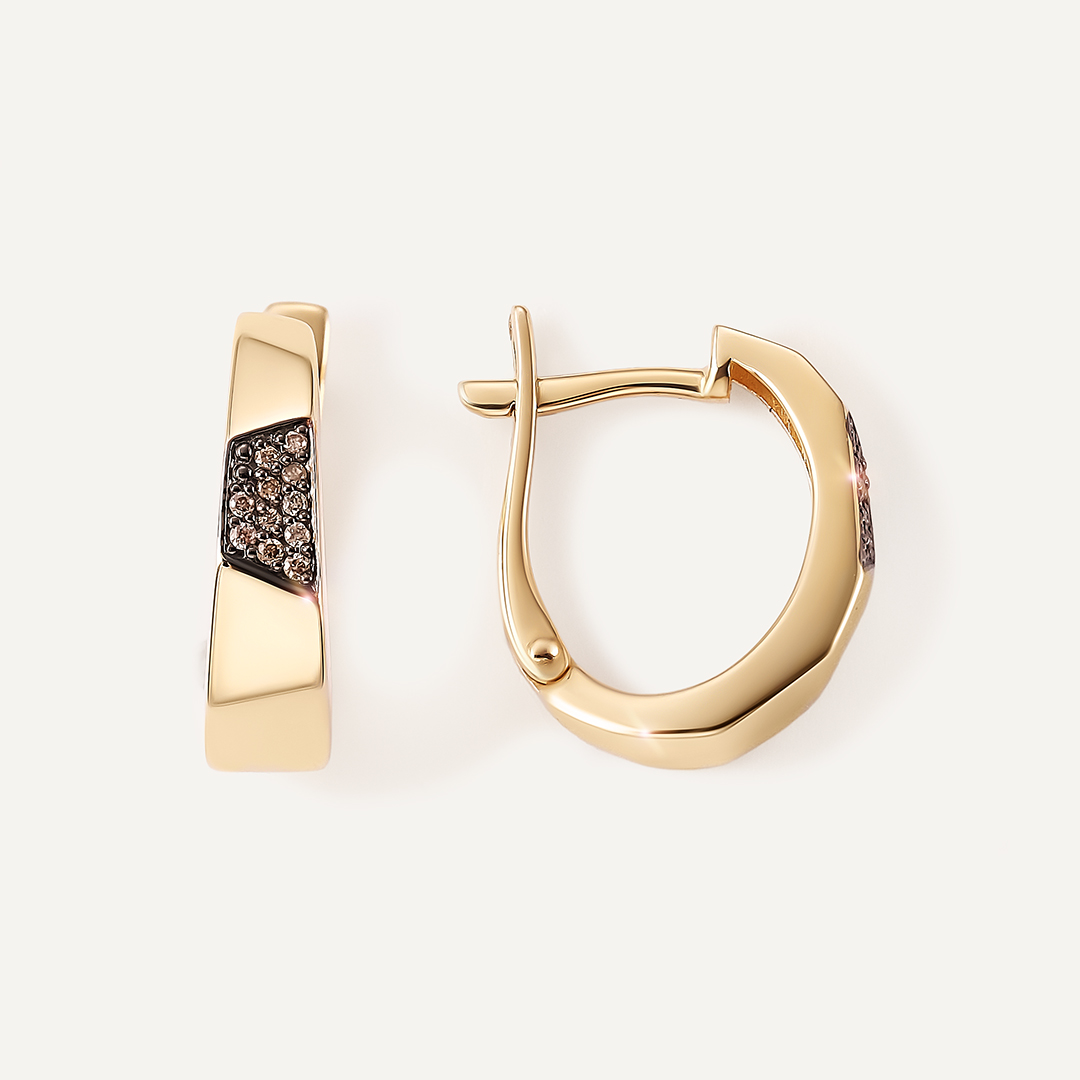 Серьги из желтого золота с коньячными бриллиантами