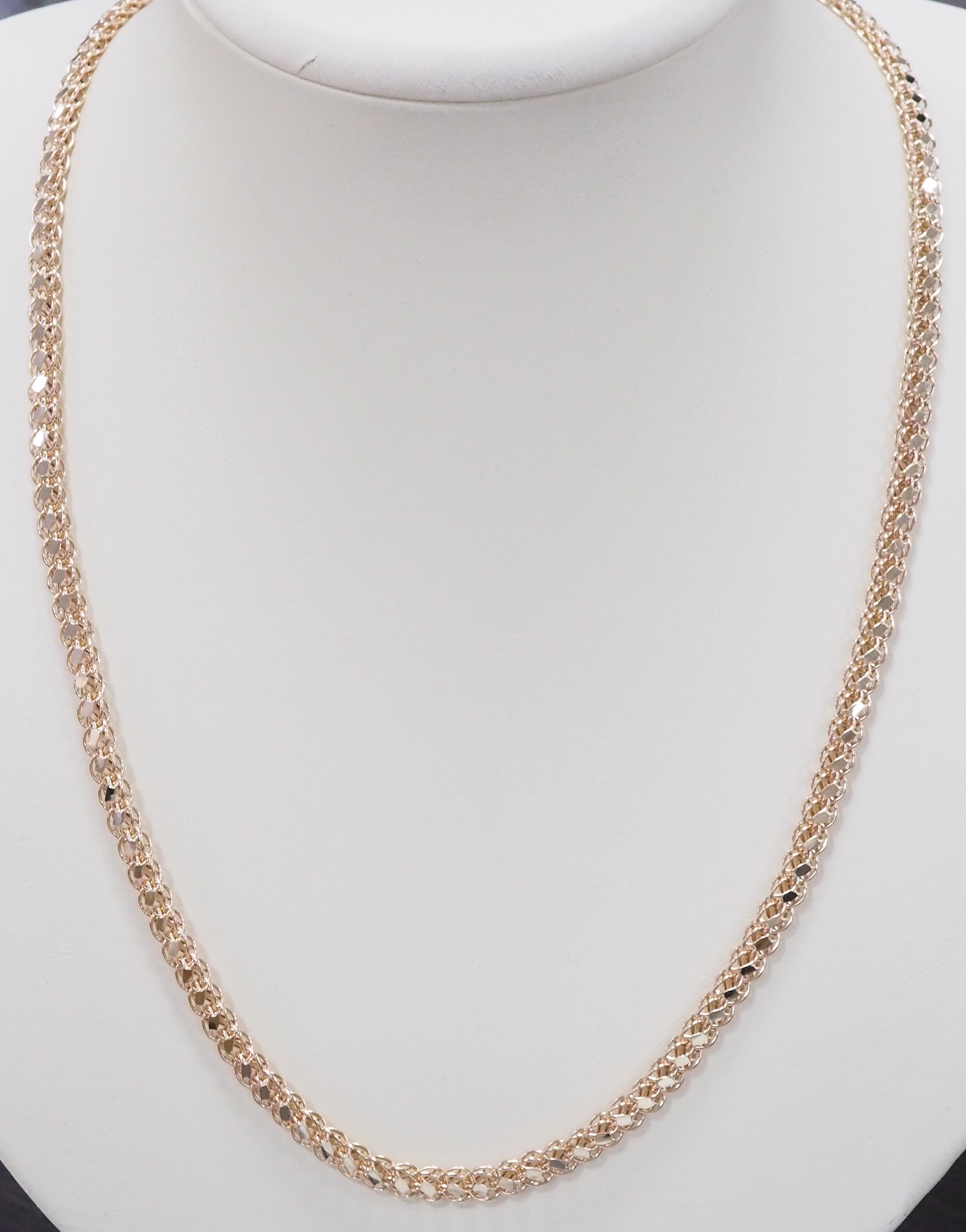 Цепь из комбинированного золота плетение "Монреаль косичка"