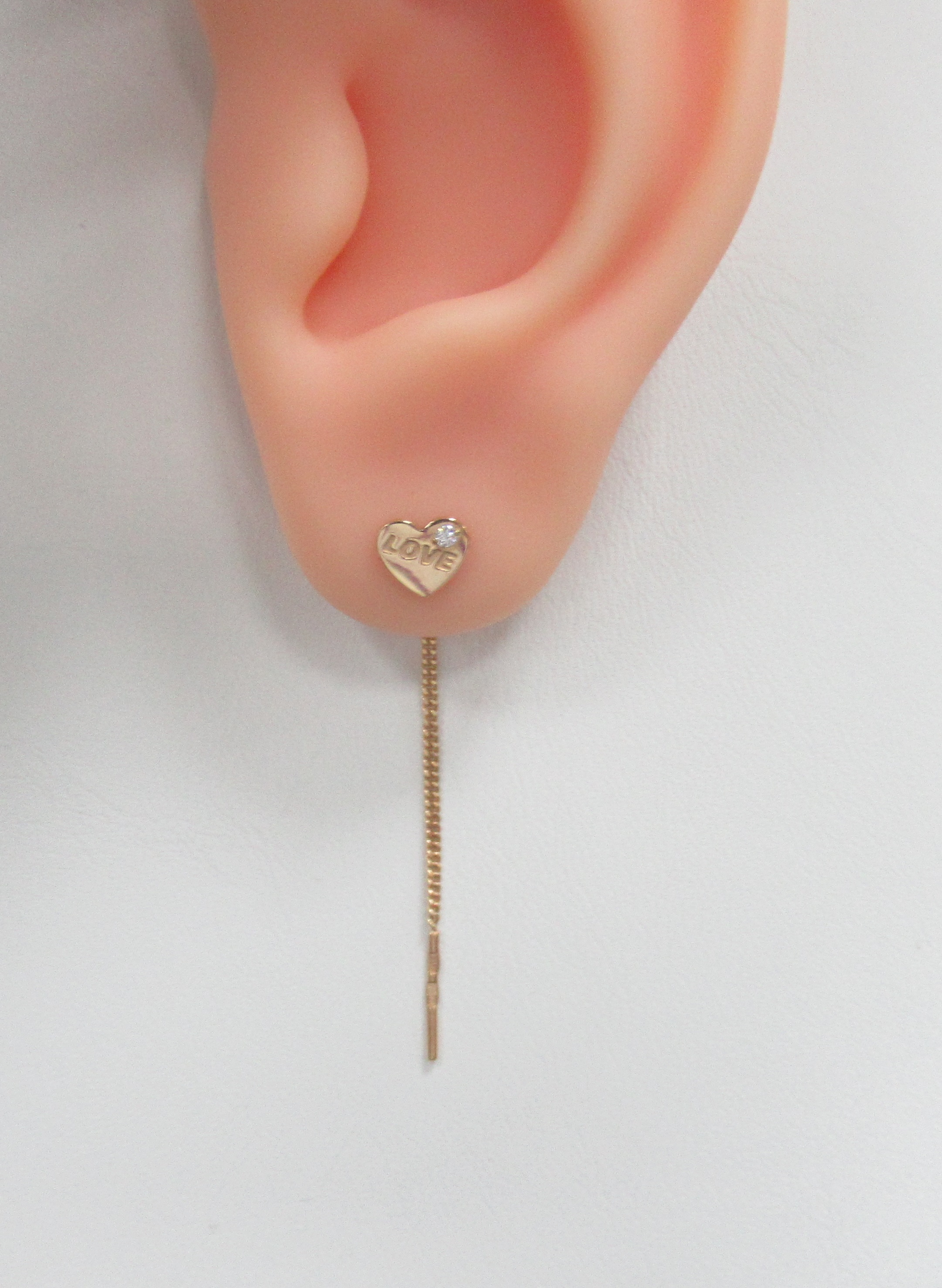 Серьги-протяжки из золота с бриллиантами "Сердца"