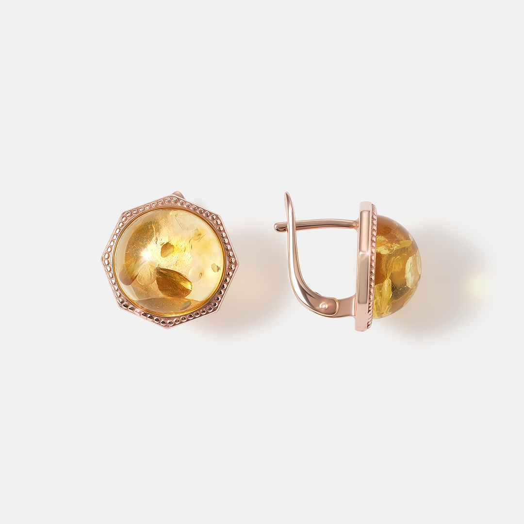 Серебряные серьги-пусеты с янтарем