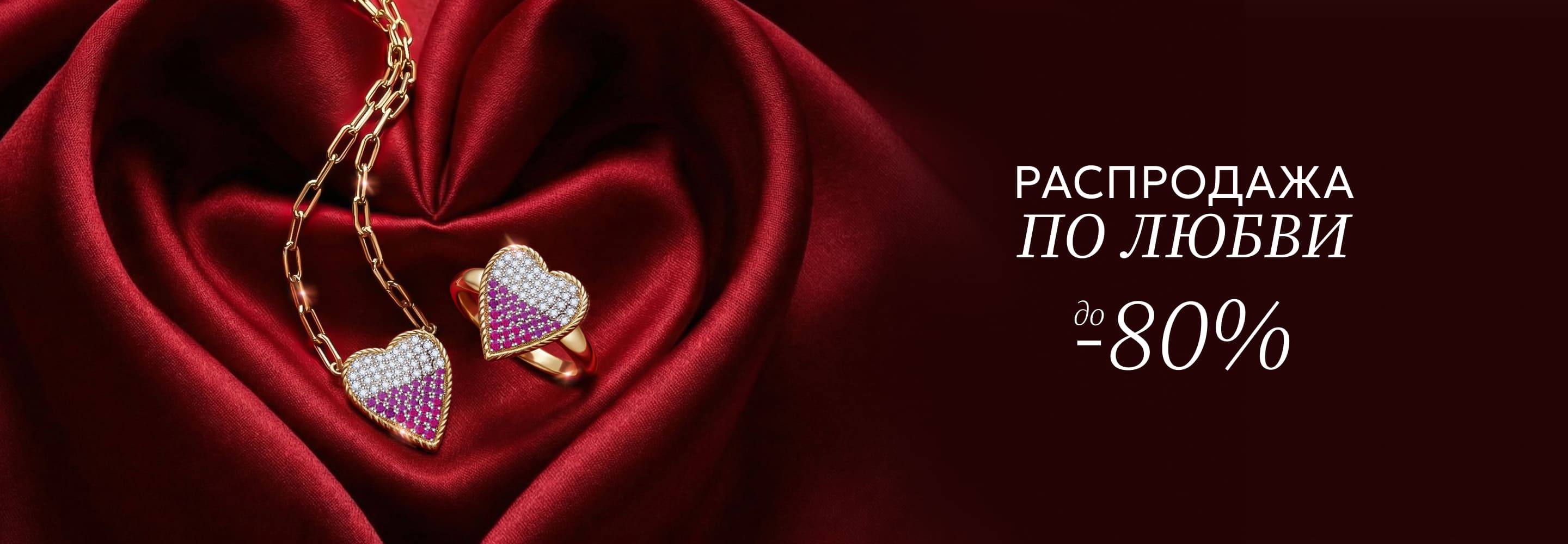 Кольцо из желтого золота с родолитами "Сердце"