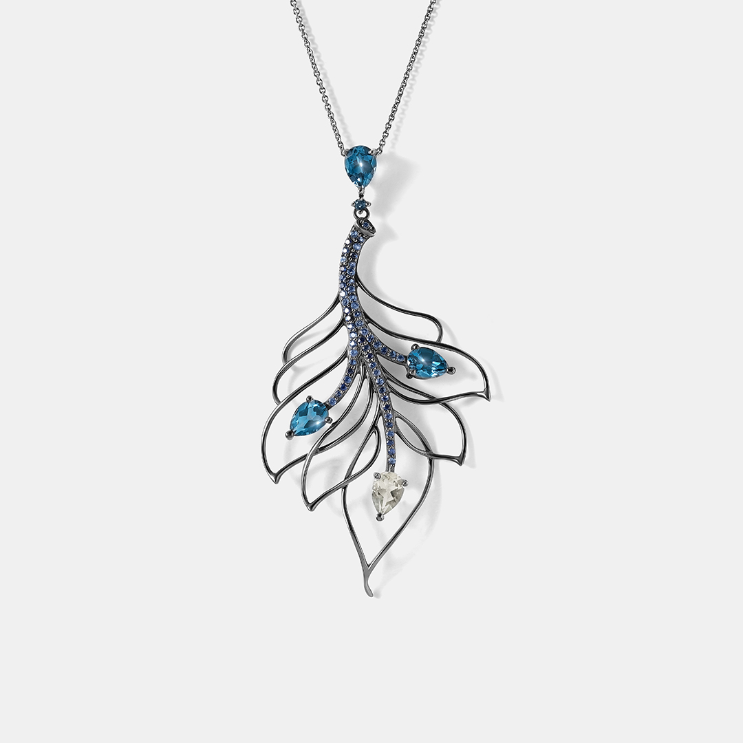 Кольцо из белого золота с иолитами, сапфирами и тсаворитами "Цветы"
