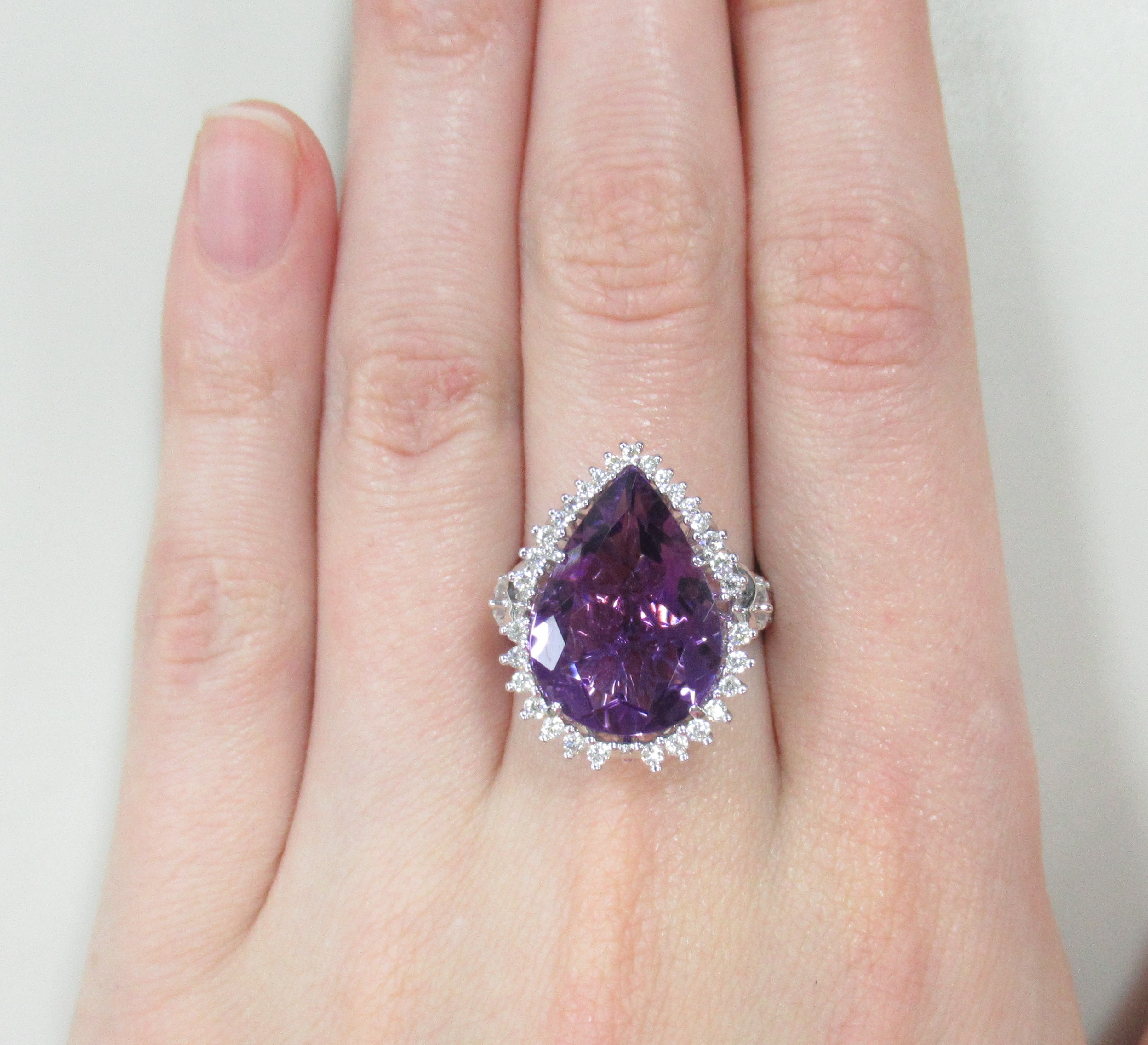 Кольцо из белого золота с иолитами, сапфирами и тсаворитами "Цветы"
