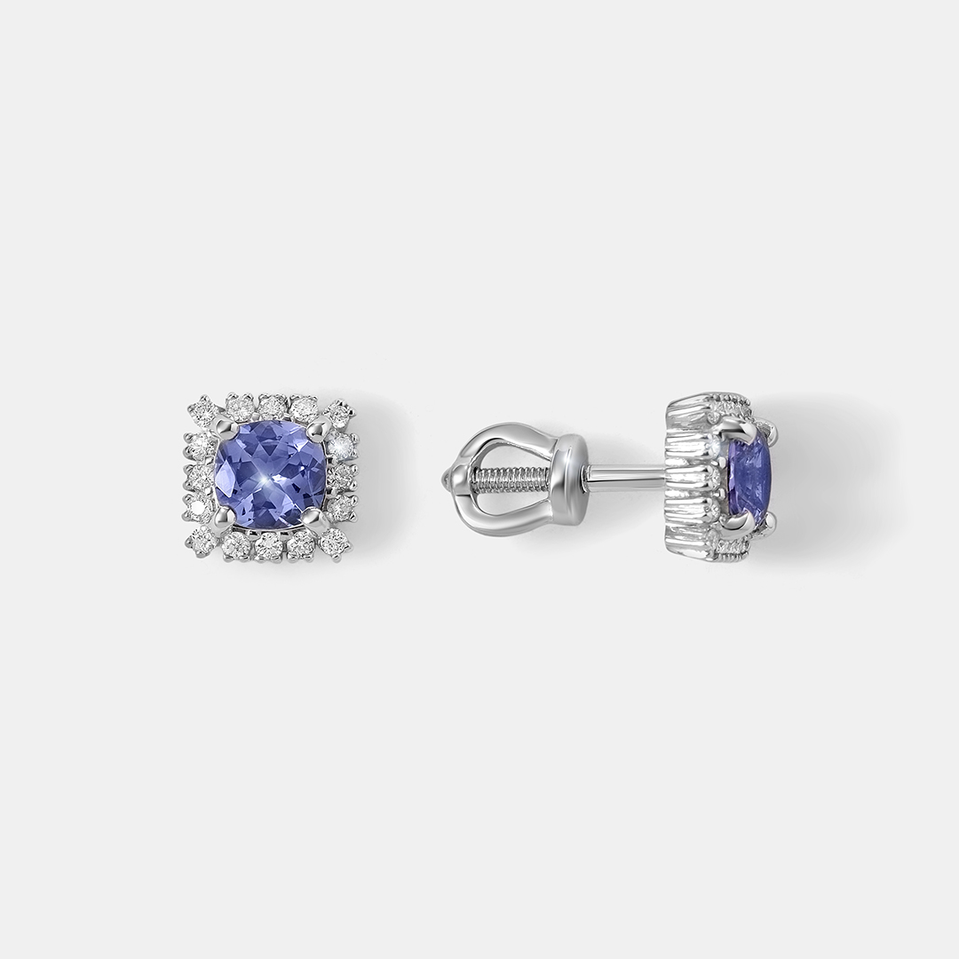 Серьги-пусеты из белого золота с танзанитами