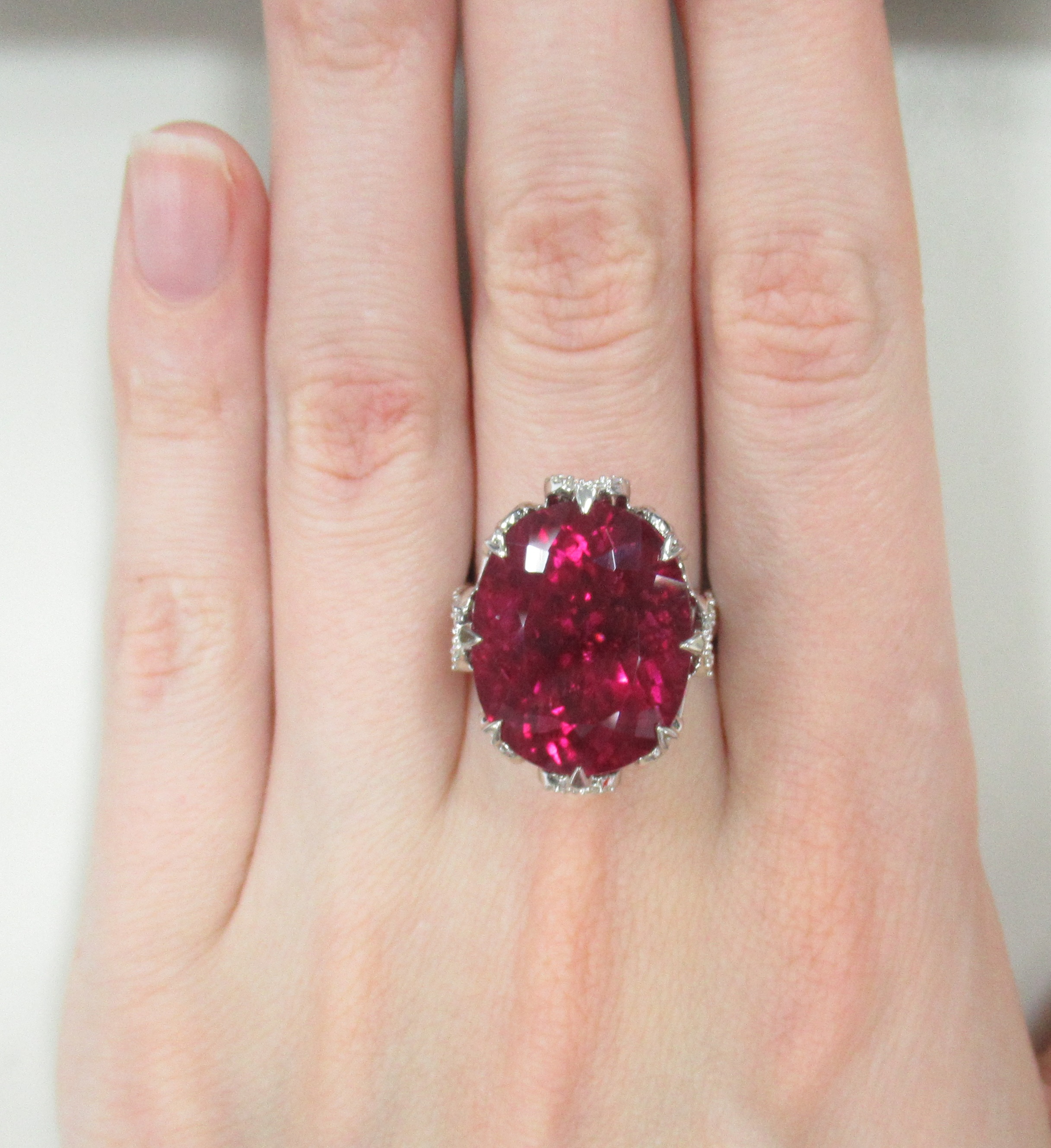 Серьги-пусеты из белого золота с иолитами, сапфирами и тсаворитами "Цветы"