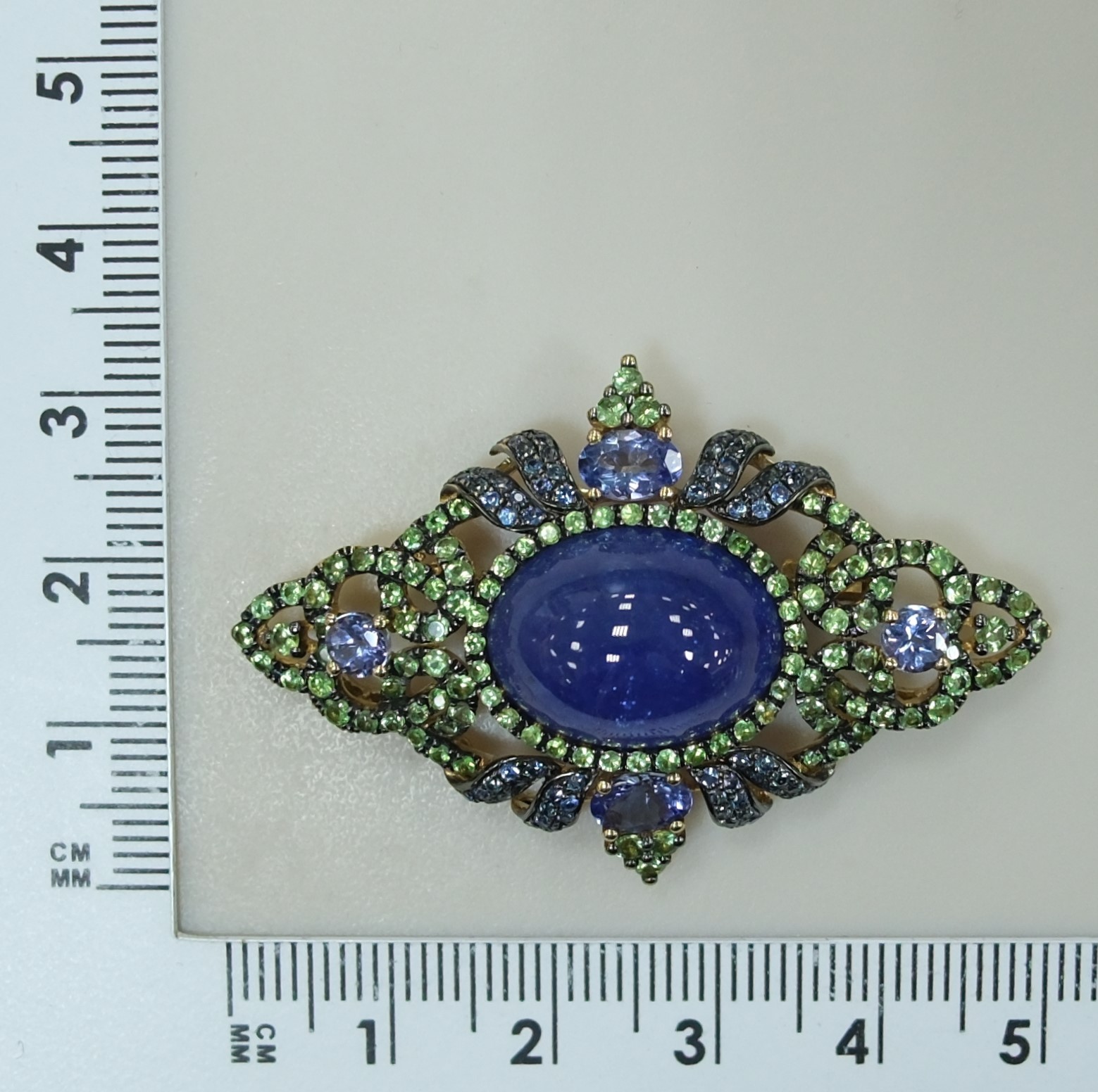 Брошь из желтого золота с танзанитом