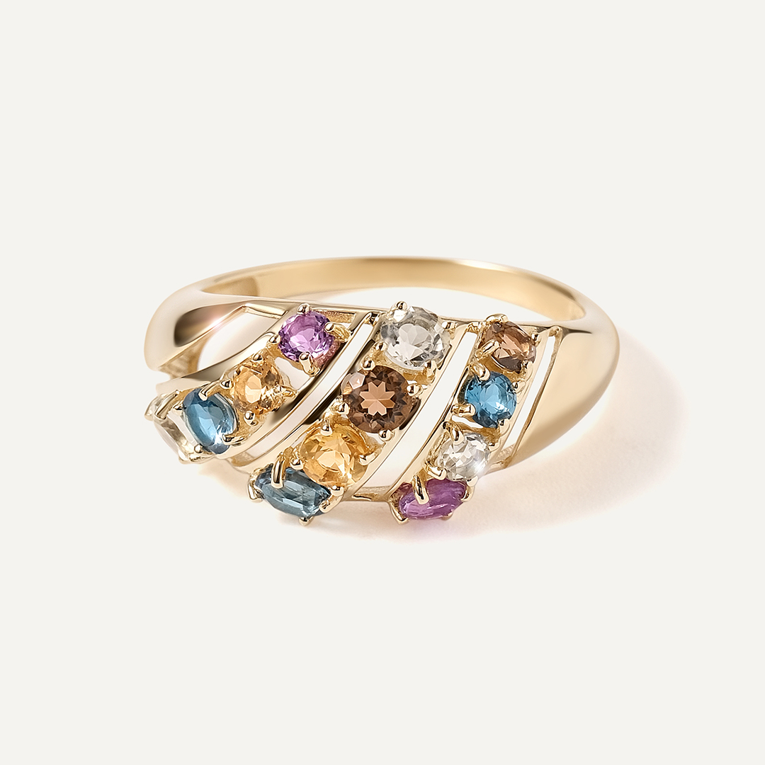 Кольцо из желтого золота с самоцветами