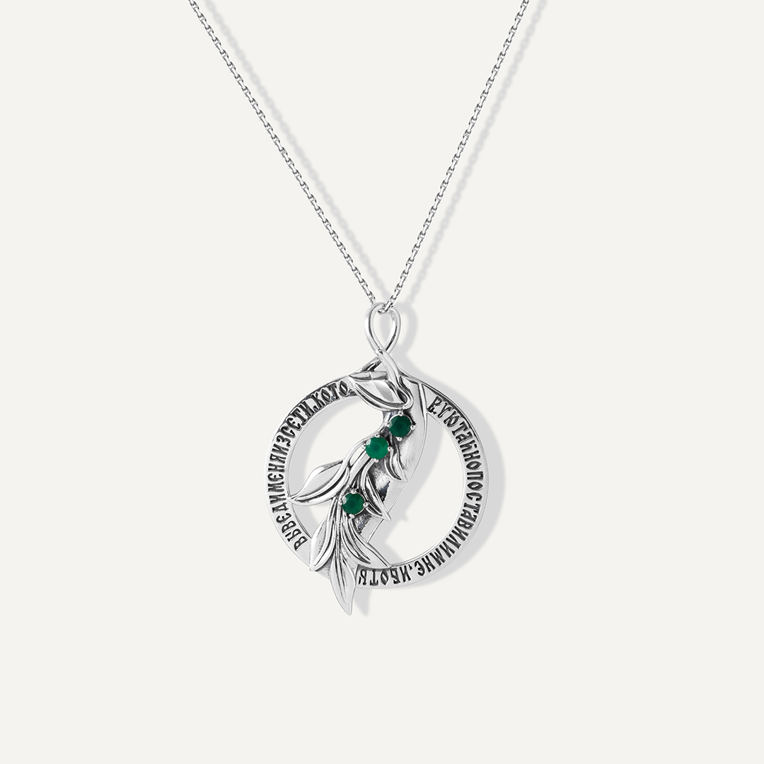 Серебряная подвеска с агатами "Крепость духа/30 псалом"