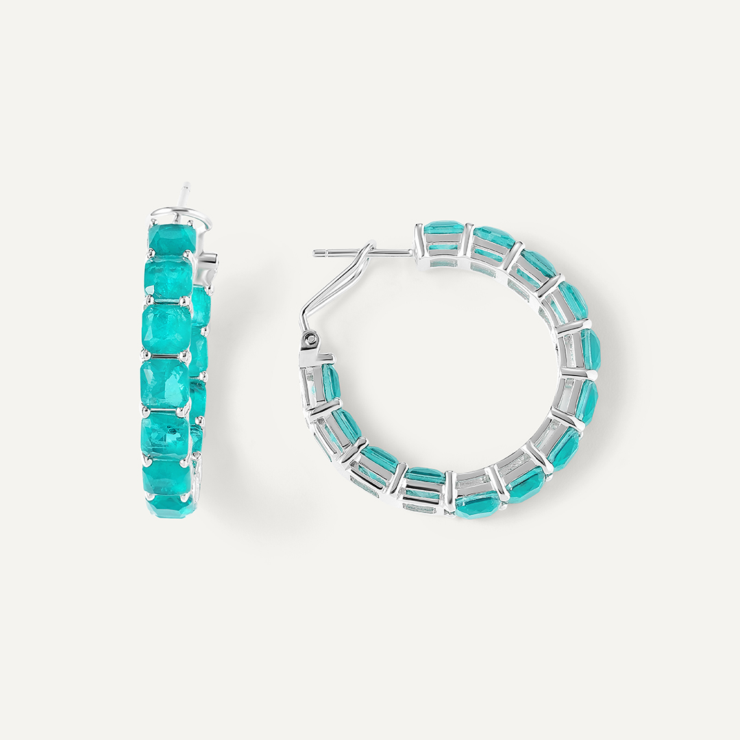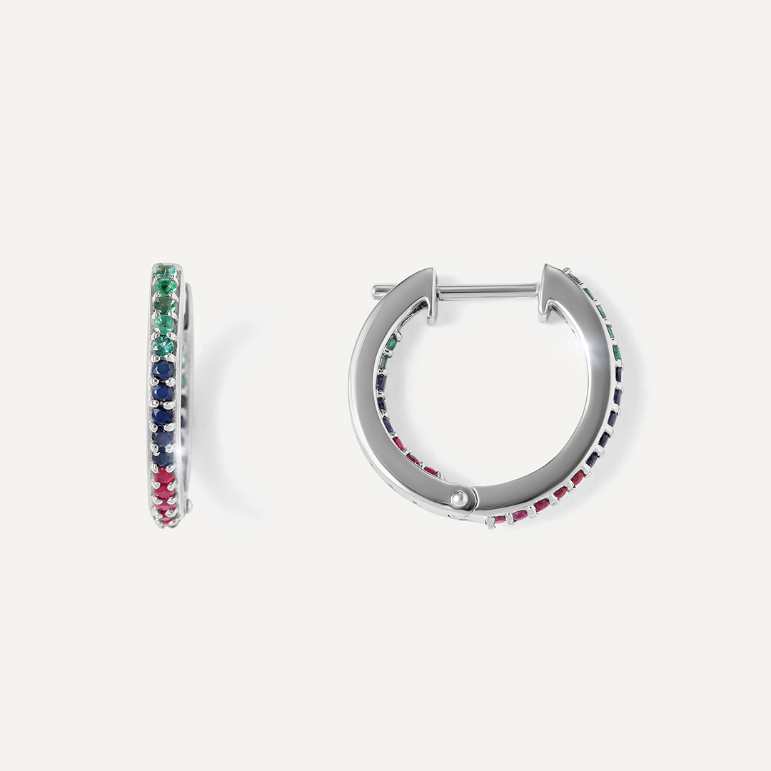 Серебряные серьги с изумрудами, сапфирами и рубинами