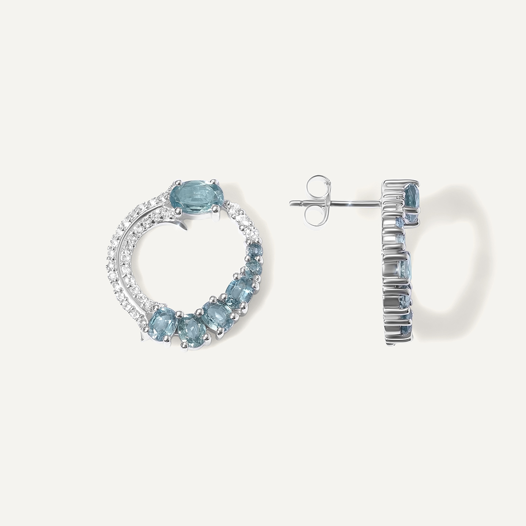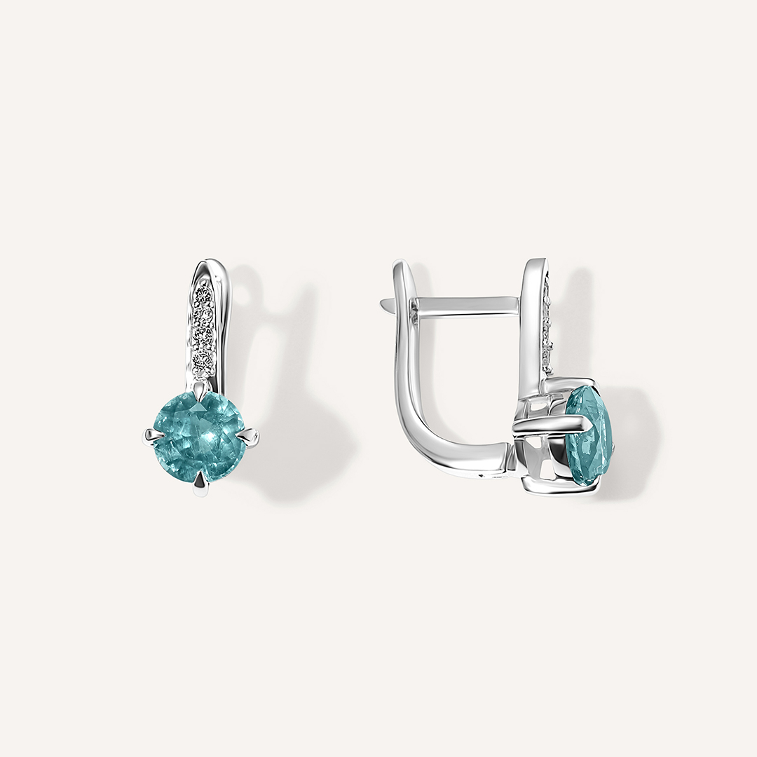 Серьги-пусеты из желтого золота с голубыми бриллиантами