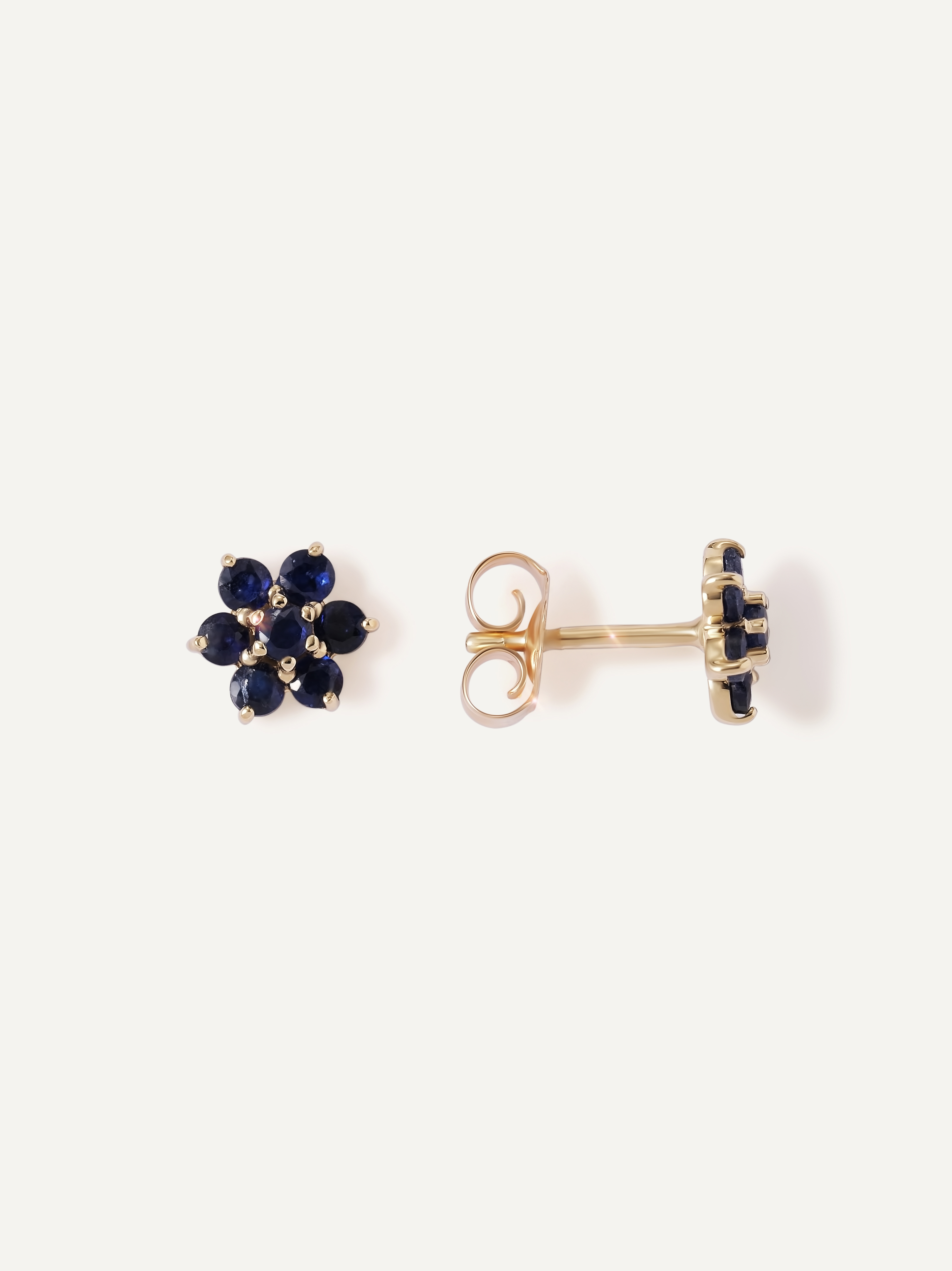 Серьги-пусеты из желтого золота с сапфирами "Цветы"
