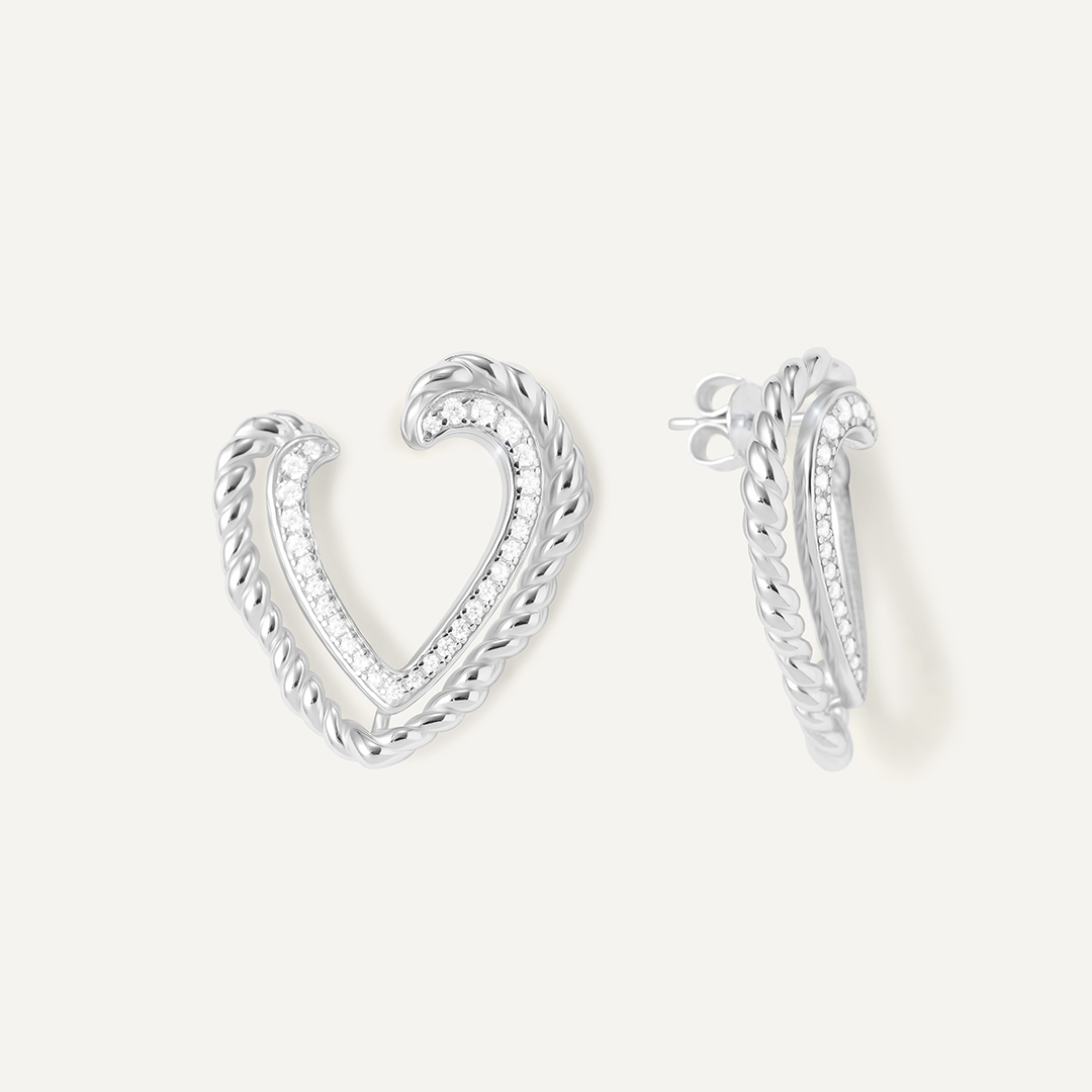 Серебряные серьги-пусеты с кубическим цирконием "Сердца"