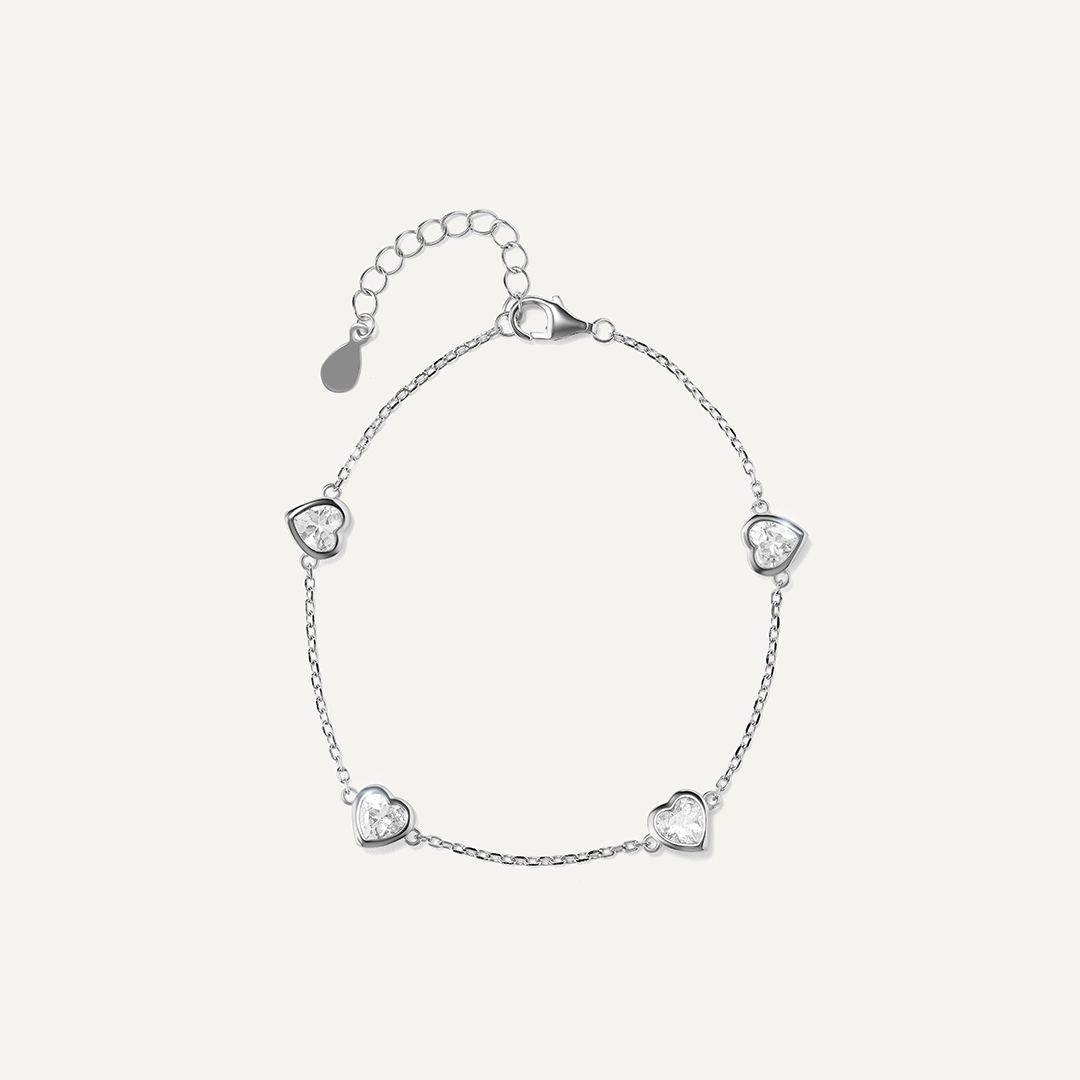 Серебряный браслет с кубическим цирконием "Сердца"