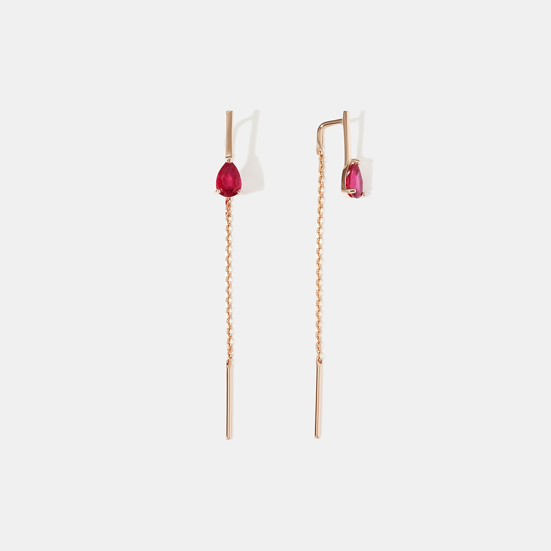 Серьги-пусеты из желтого золота с зелеными бриллиантами