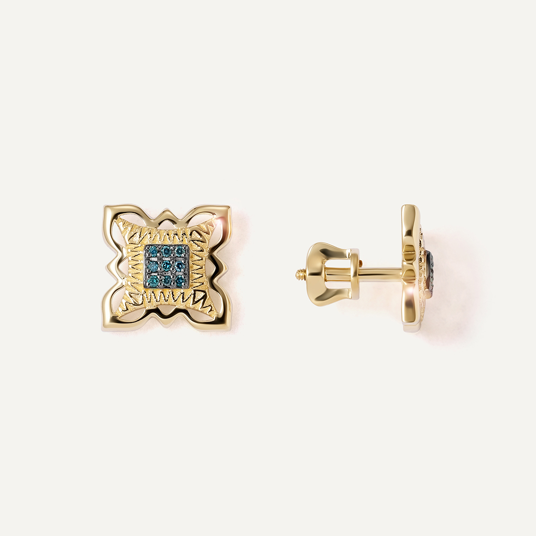 Серьги-пусеты из желтого золота с голубыми бриллиантами